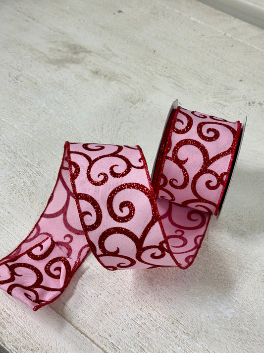 2.5 Inch By 10 Yard Red And Pink Glitter Swirl Ribbon
