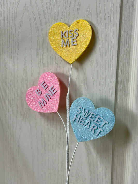 27.5 Inch Yellow Pink Light Blue Glitter Candy Heart Spray