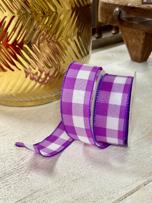 1.5 Inch By 10 Yard Purple And White Celine Check Plaid Ribbon