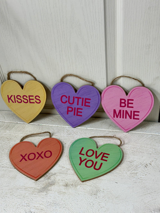 6 Inch Conversation Hearts Wreath Signs Five Assorted Colors