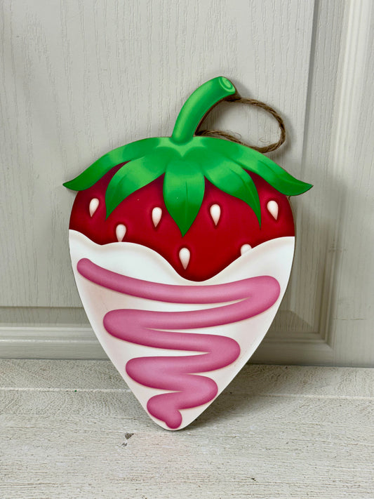 12 Inch White Chocolate Covered Strawberry Wooden Sign