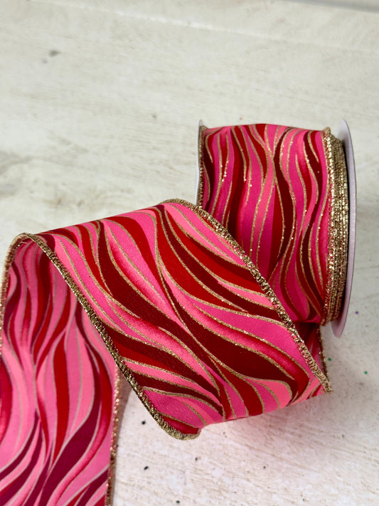 2.5 Inch By 10 Yard Red Pink Wavy Stripes Ribbon