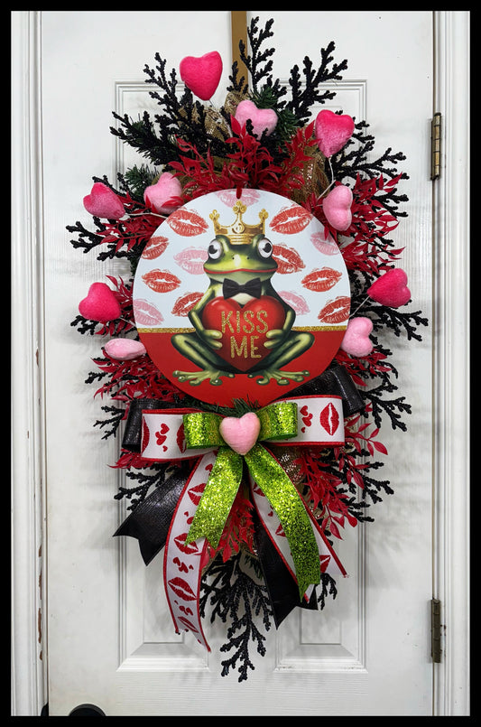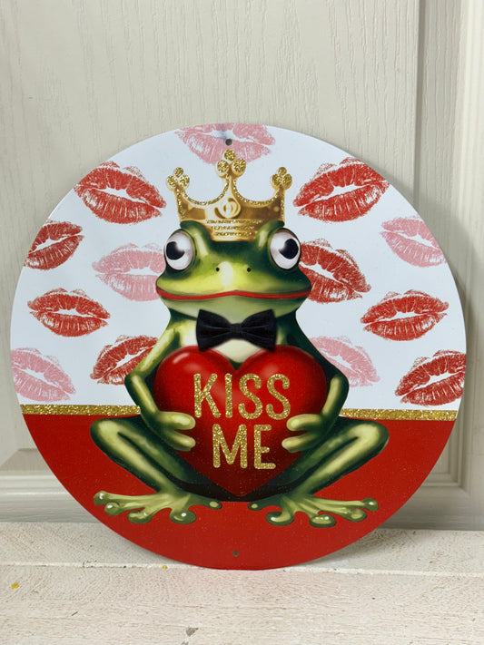 12 Inch Kiss Me Valentines Frog Metal Sign
