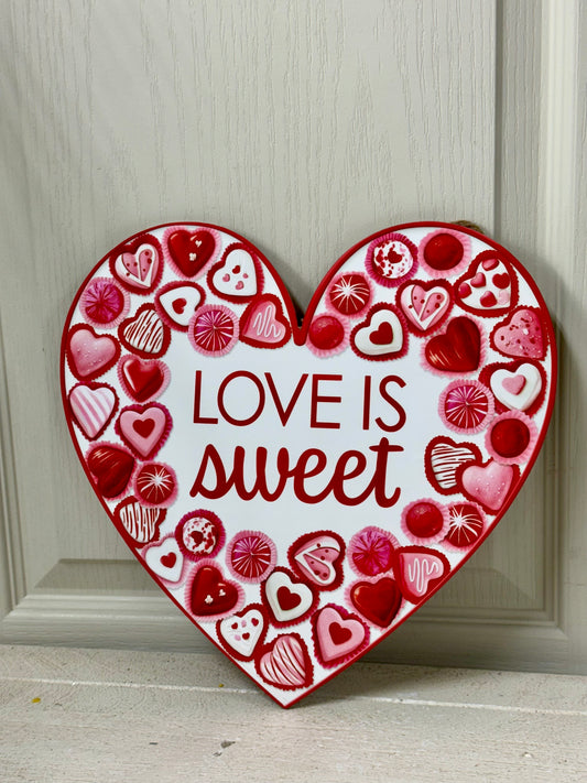 12 Inch Red Pink Love Is Sweet Heart Wooden Sign