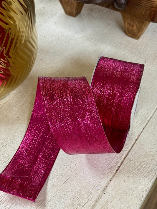 2.5 Inch By 25 Yards Fuchsia Shiny Metallic Ribbon