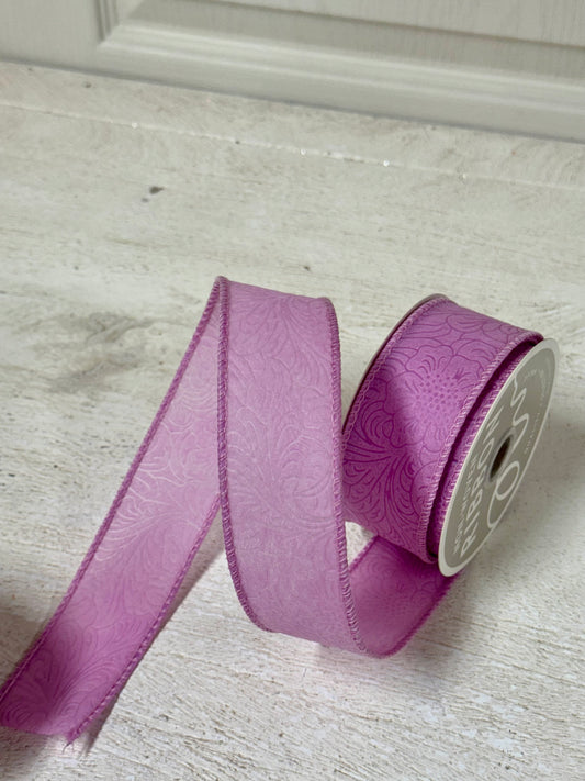 1.5 Inch By 10 Yard Pink Floral Leaves Ribbon