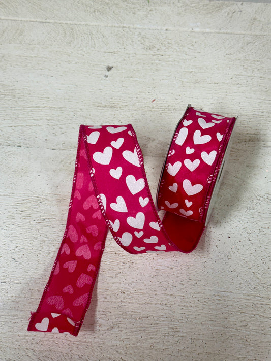 1.5 Inch By 10 Yard Hot Pink And White Heart Ribbon