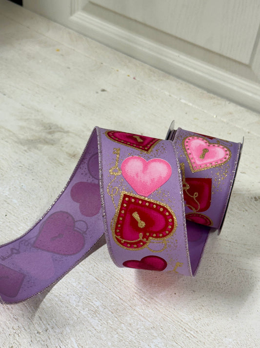 2.5 Inch By 10 Yard Lavender Heart Locks Ribbon