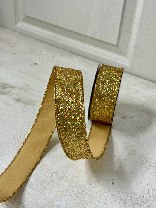 1.5 Inch By 10 Yard Laser Gold Glitter Ribbon