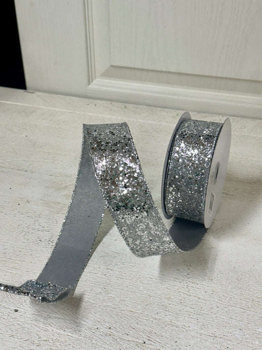 1.5 Inch By 10 Yard Silver Large Glitter Ribbon