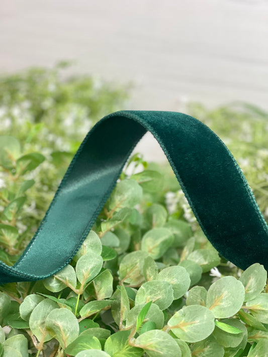 1.5 Inch By 10 Yard Emerald Green Velvet Ribbon With Satin Backing