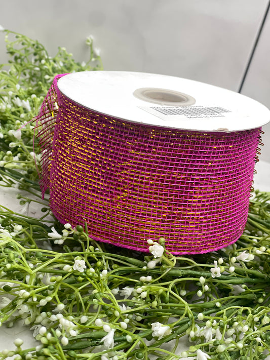 3 Inch by 20 Yards Designer Netting Hot Pink With Gold Glamour