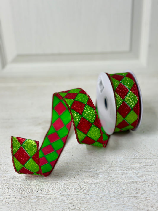 1.5 Inch By 10 Yard Red And Lime Harlequin Ribbon