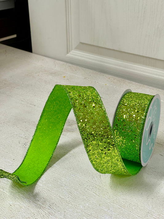 1.5 Inch By 10 Yard Lime Green Large Glitter Ribbon