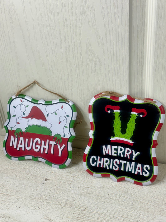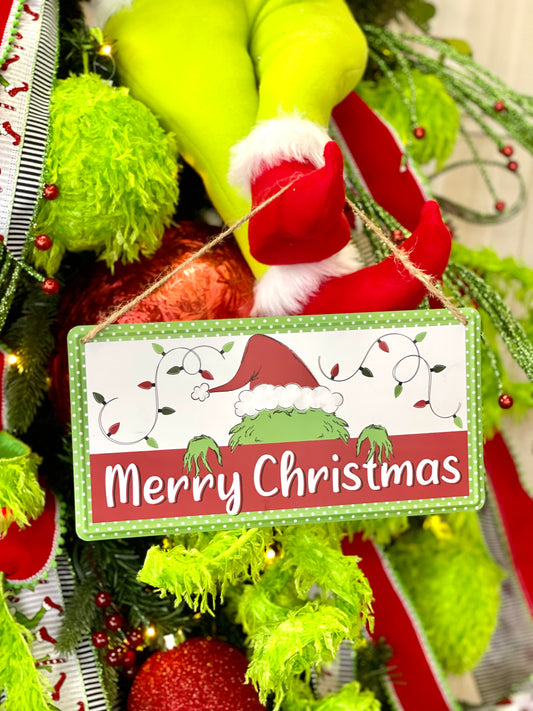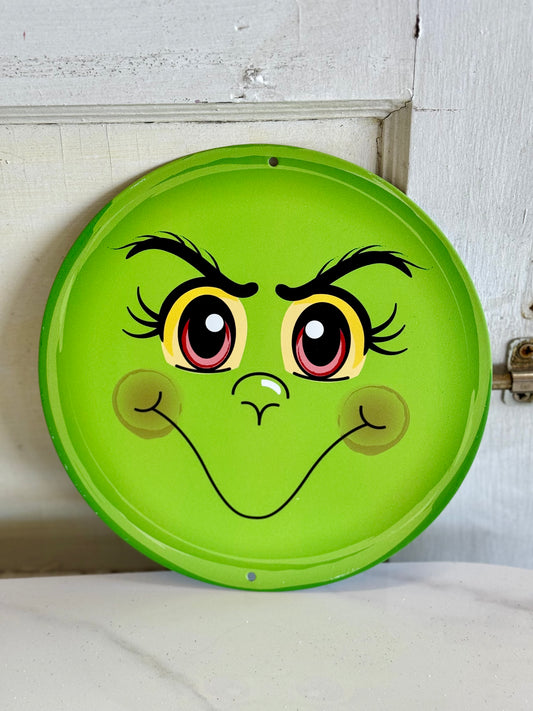 7 Inch Green Monster Assorted Tin Christmas Sign