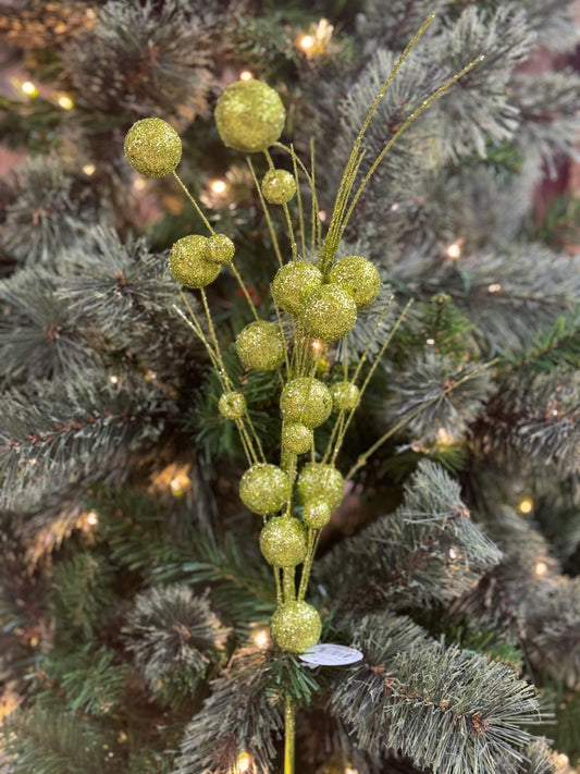 27 Inch Lime Green Mixed Size Glittered Ball Spray