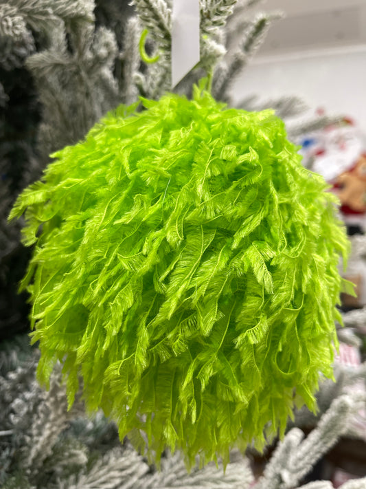 4 Inch Lime Green Furry Fabric Ornament Ball