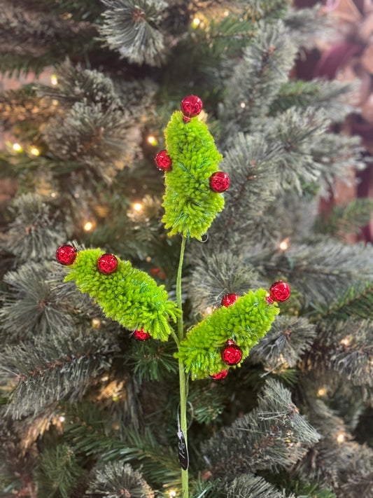 24 Inch Green And Red Faux Sherpa Curl Spray