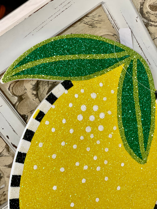 Yellow Glitter Eva Lemon With Black And White Striped Border