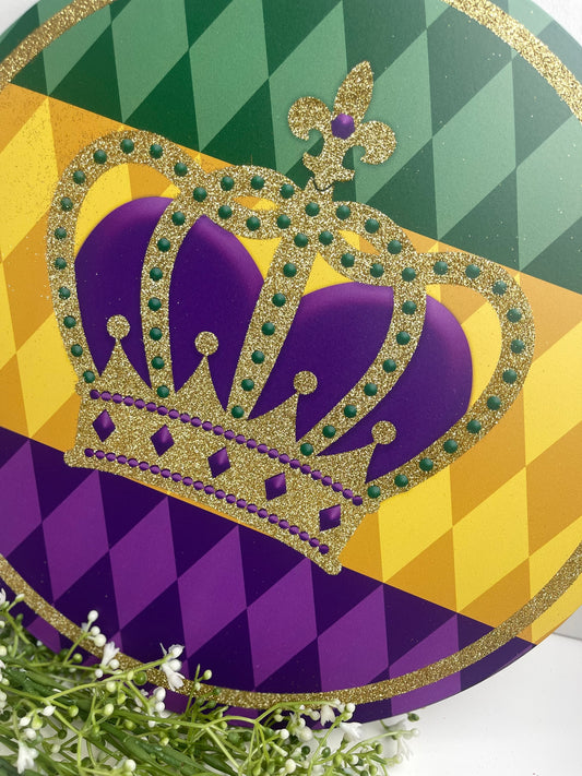 12 Inch Glitter Mardi Gras Crown Metal Sign