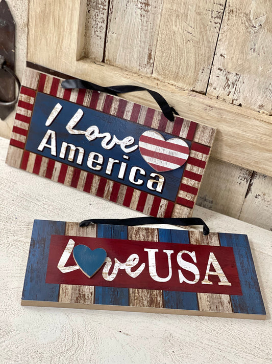 12 Inch By 6 Inch Love America Striped Sign Two Styles