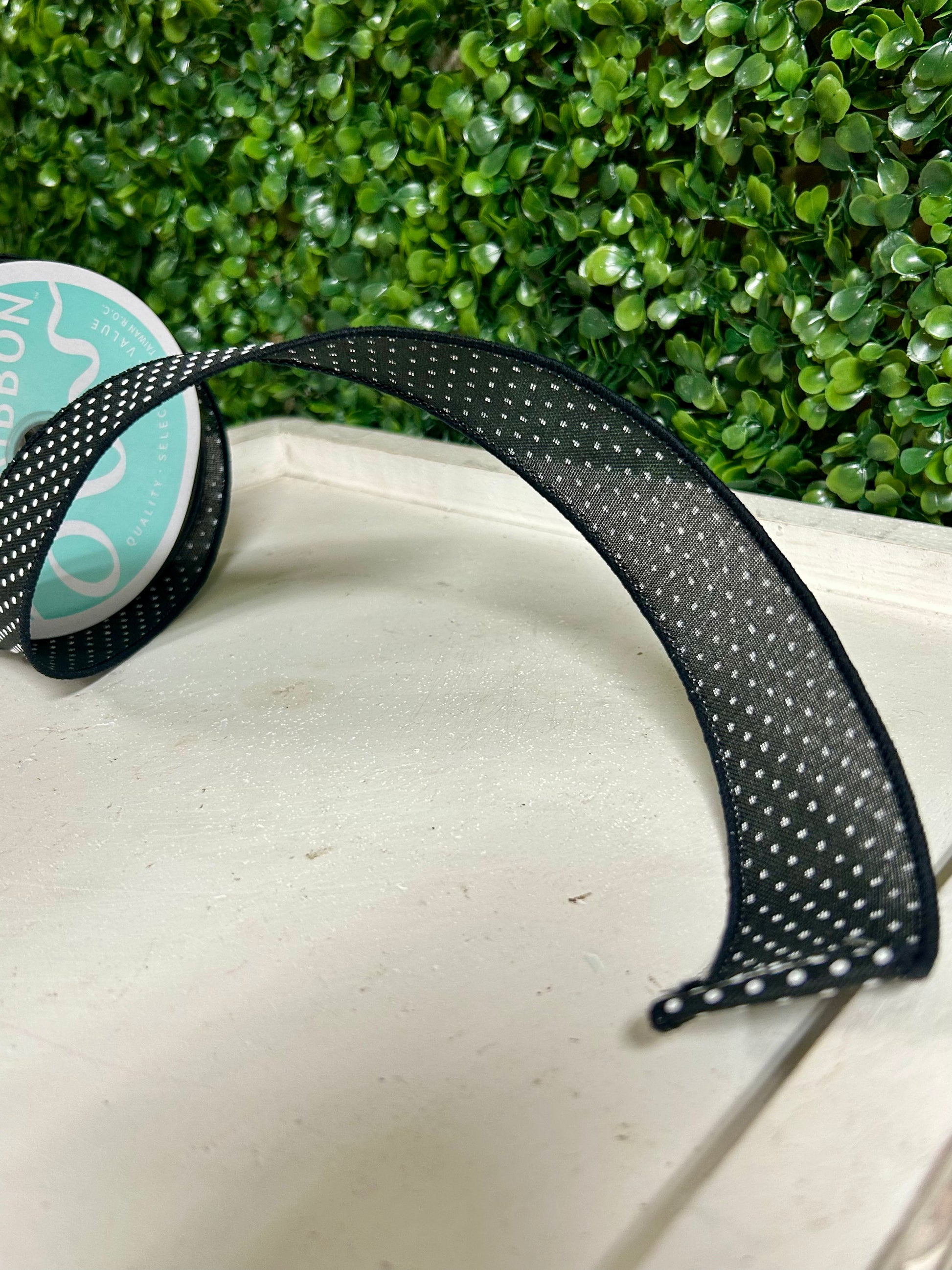 This premium ribbon features a sophisticated black and white raised Swiss dot pattern on a rich royal black base, offering a classic yet contemporary aesthetic. Measuring 1.5 inches wide with a generous 10-yard length, it's ideal for gift wrapping, crafting, floral arrangements, and seasonal decorating projects. The textured dot design adds dimensional appeal and visual interest to any application. Perfect for adding an elegant finishing touch to presents, wreaths, centerpieces, or DIY craft endeavors throughout the year.