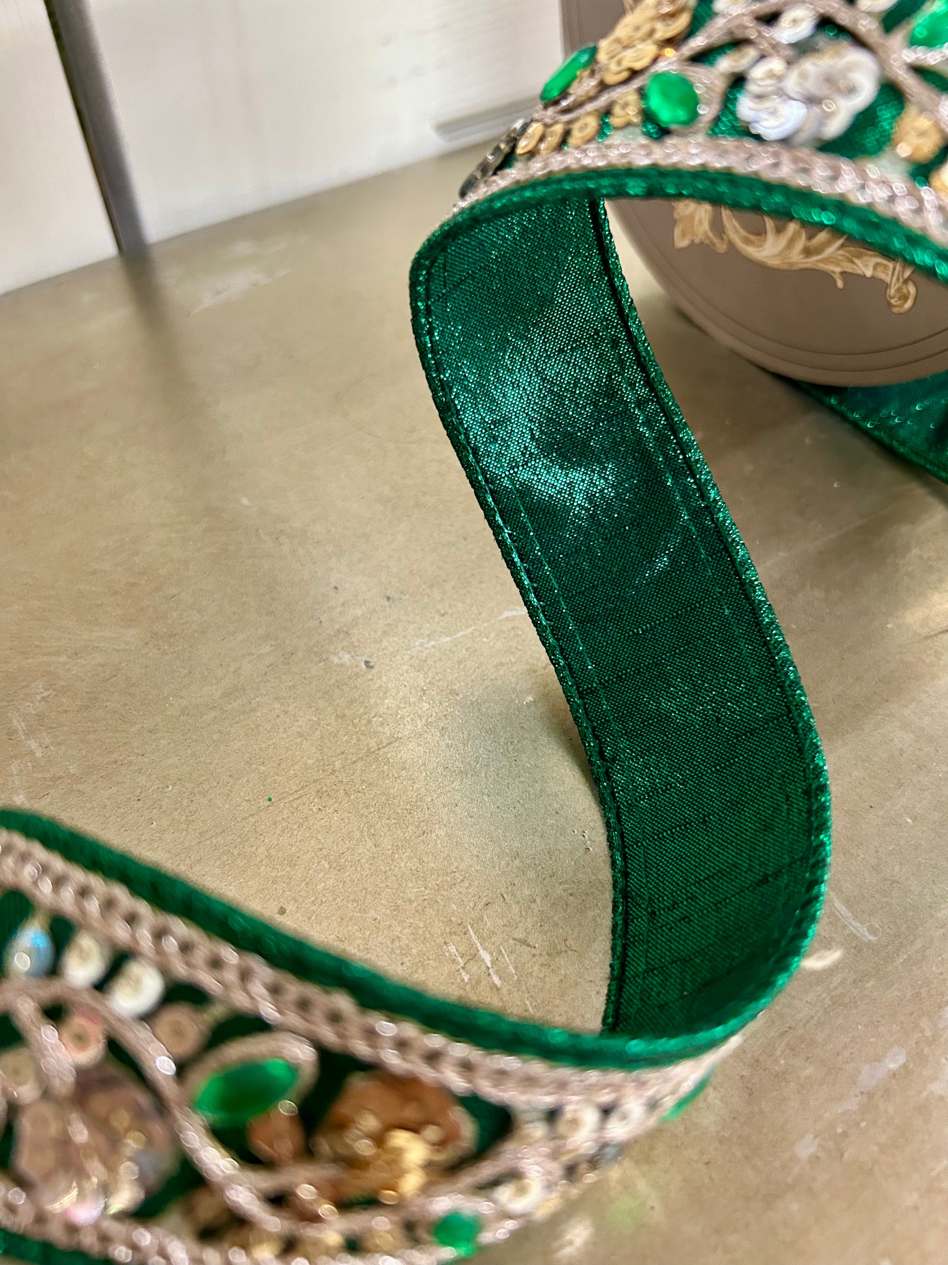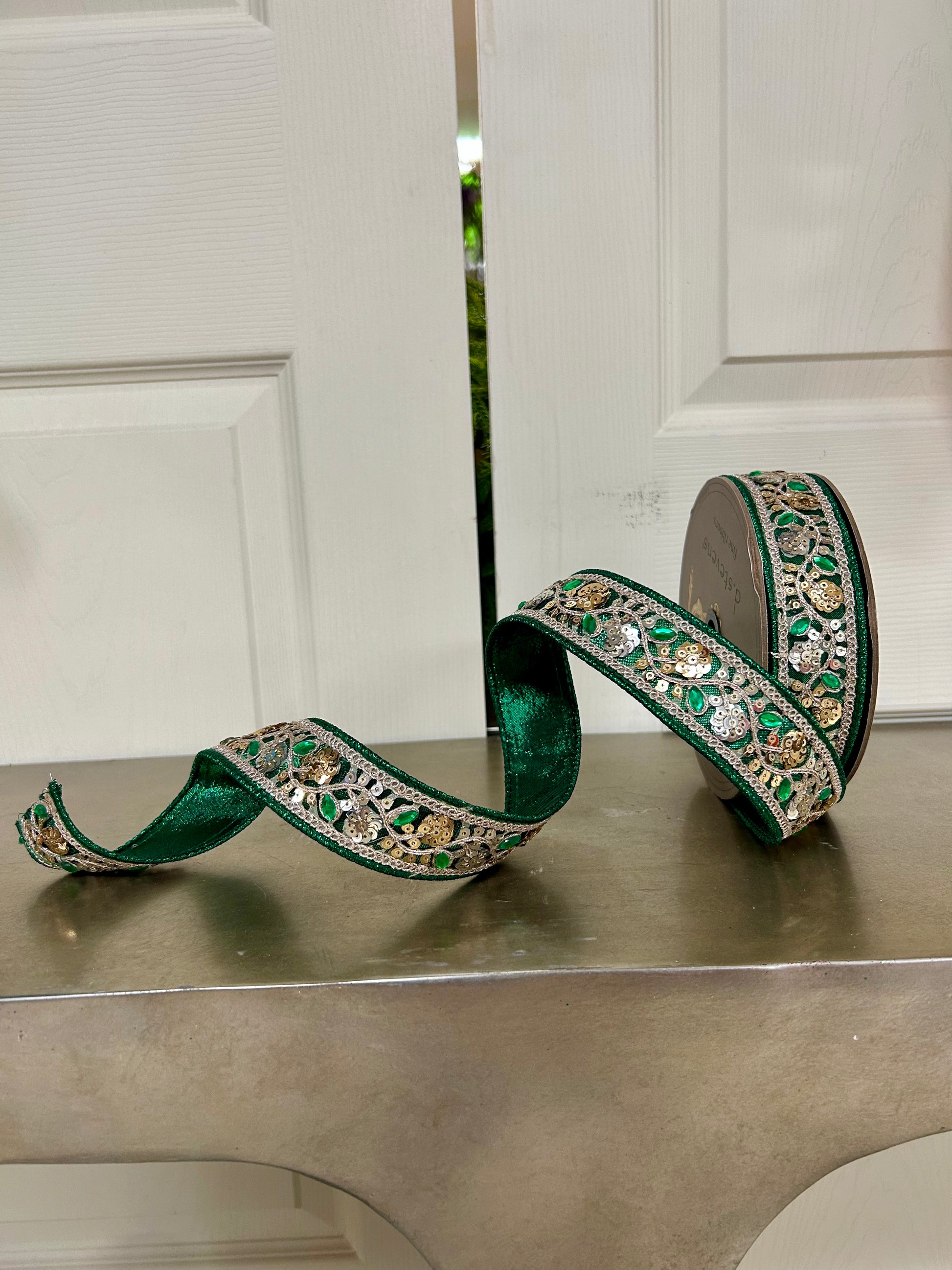1.5 Inch By 10 Yard Emerald Green Metallic Dupioni Jewel Ribbon