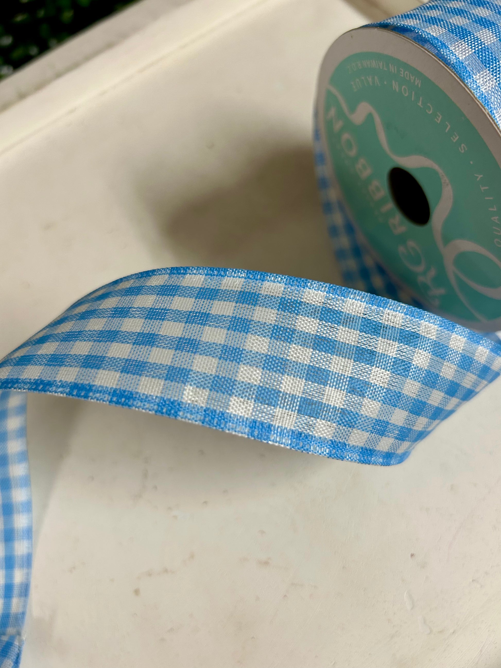 1.5 Inch By 10 Yard Light Blue And White Gingham Check Ribbon
