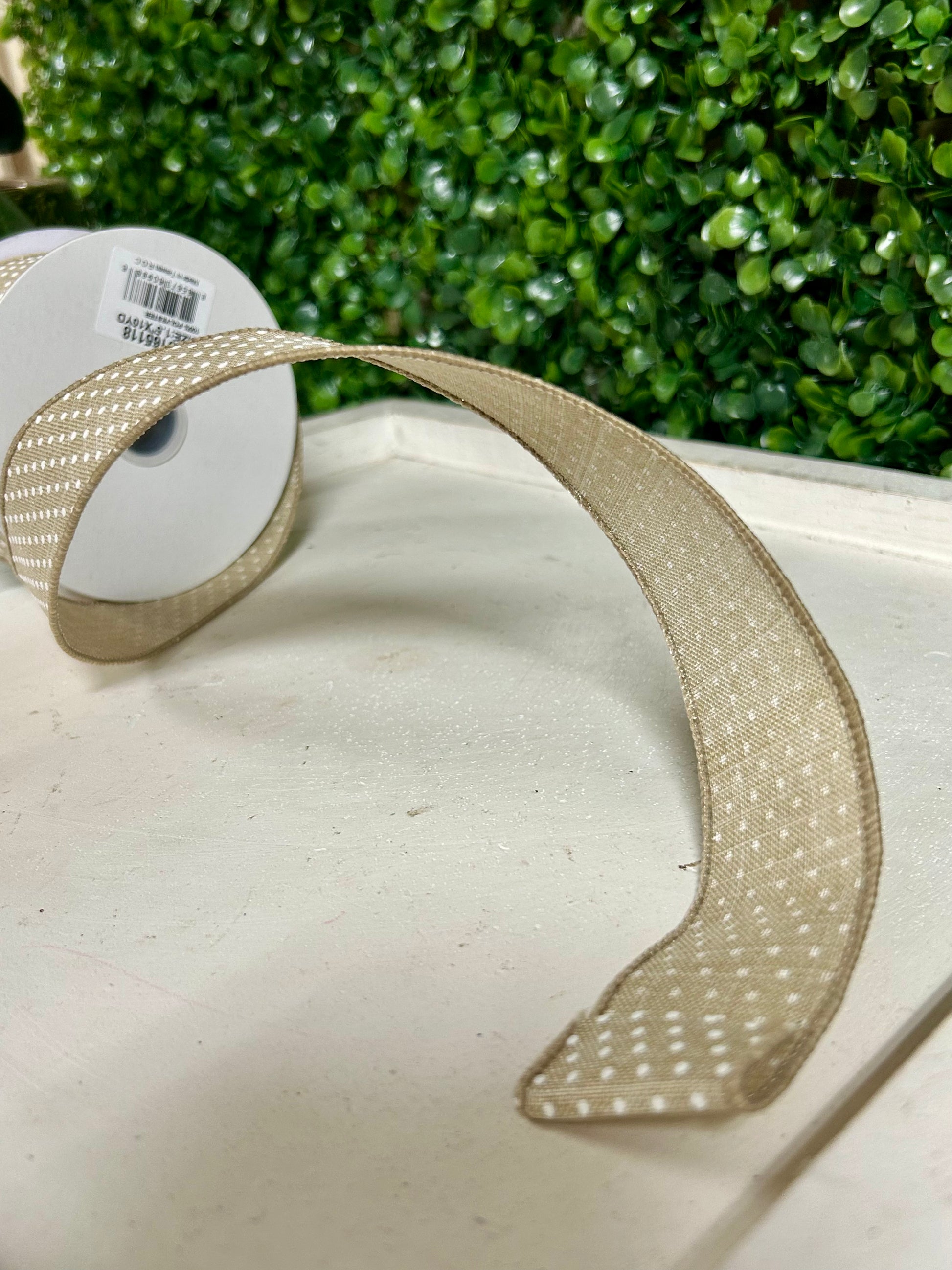 1.5 Inch By 10 Yard Natural And White Raised Swiss Dots On Royal Ribbon