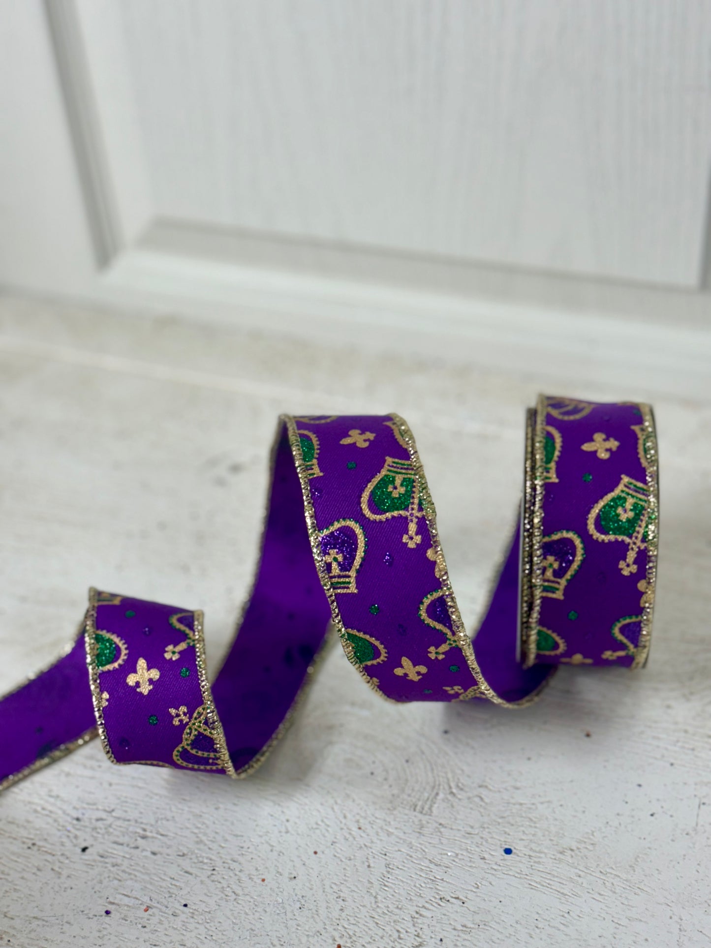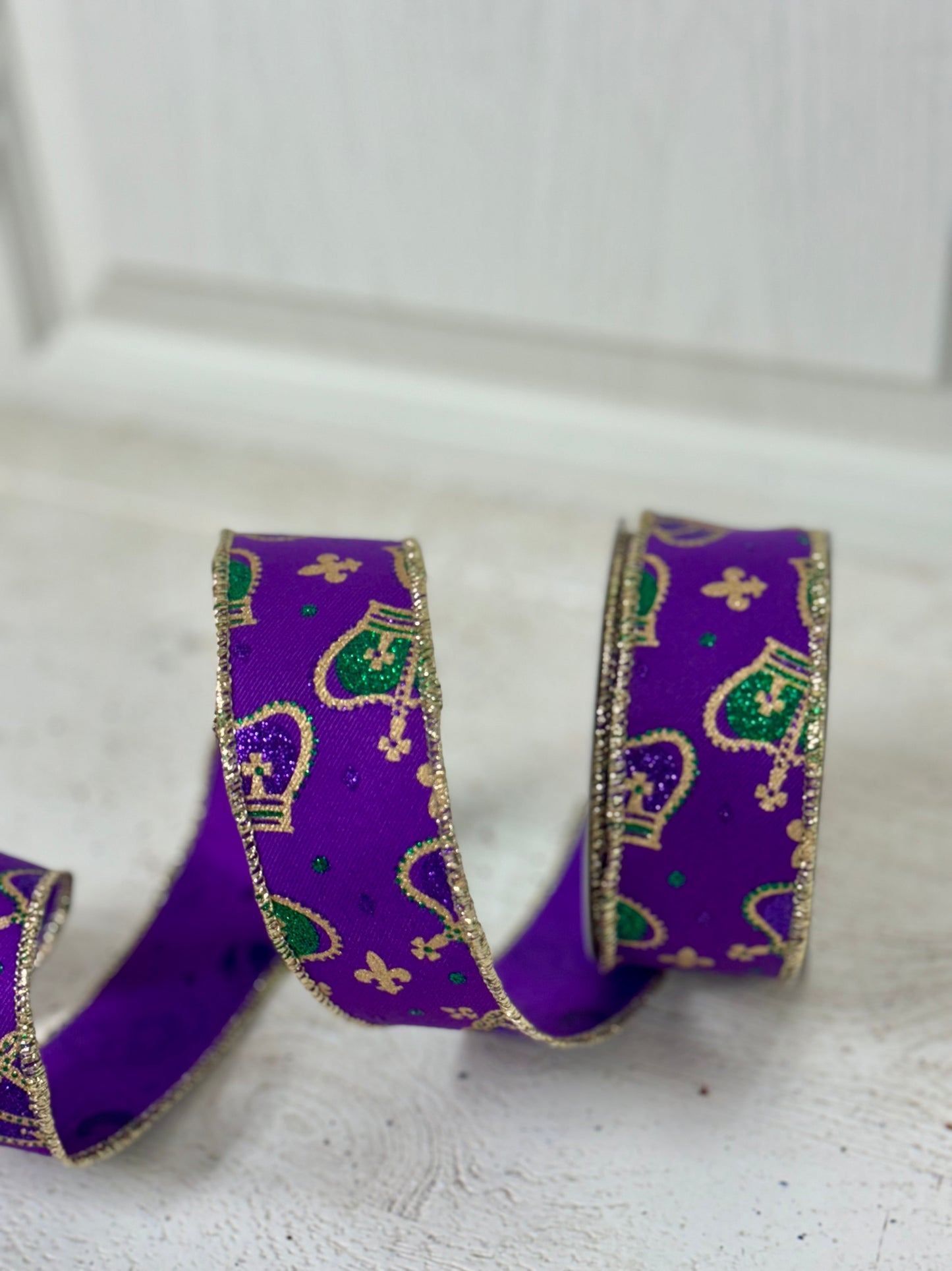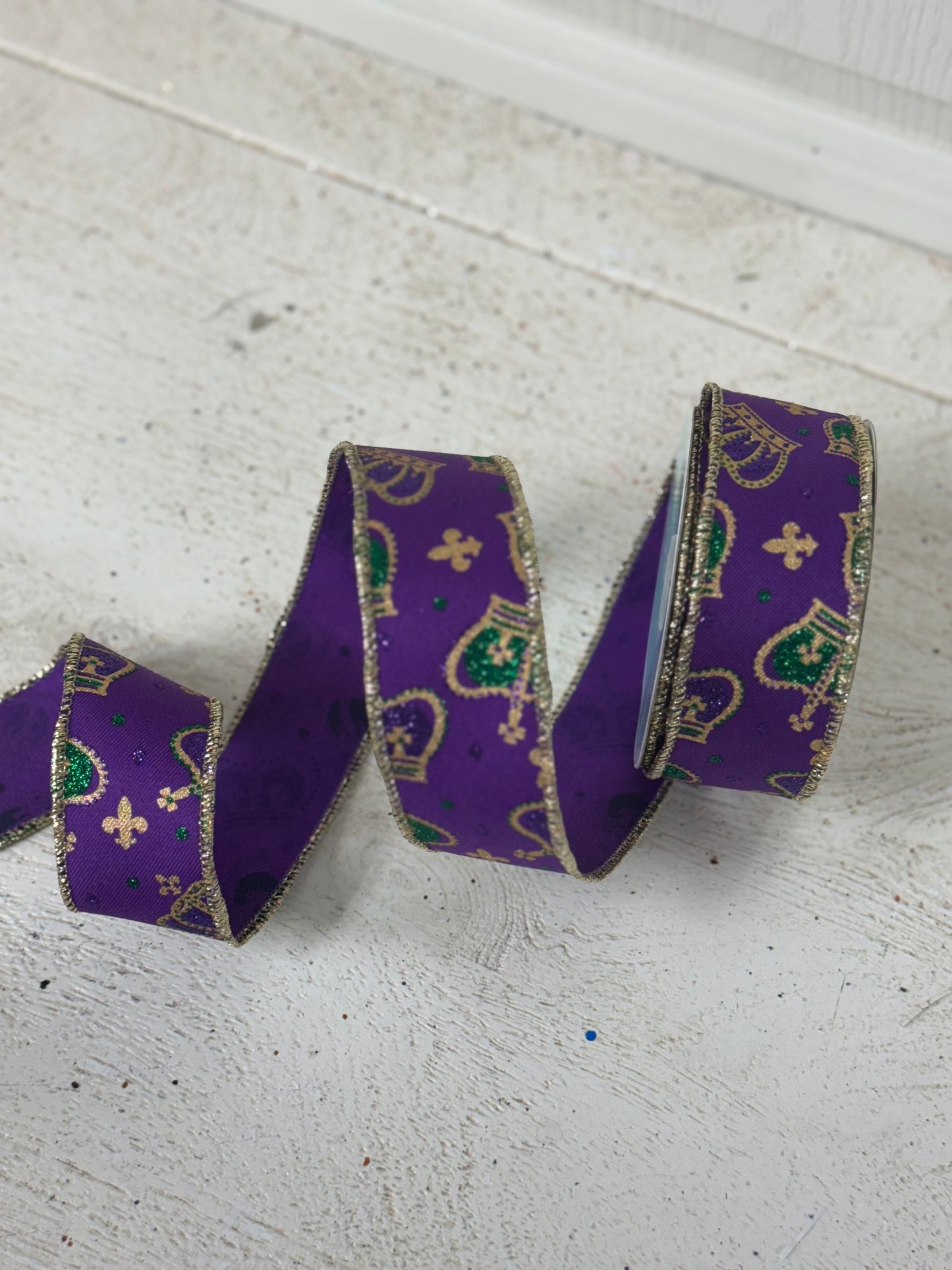 1.5 Inch By 10 Yard Purple Mardi Gras Crowns Ribbon
