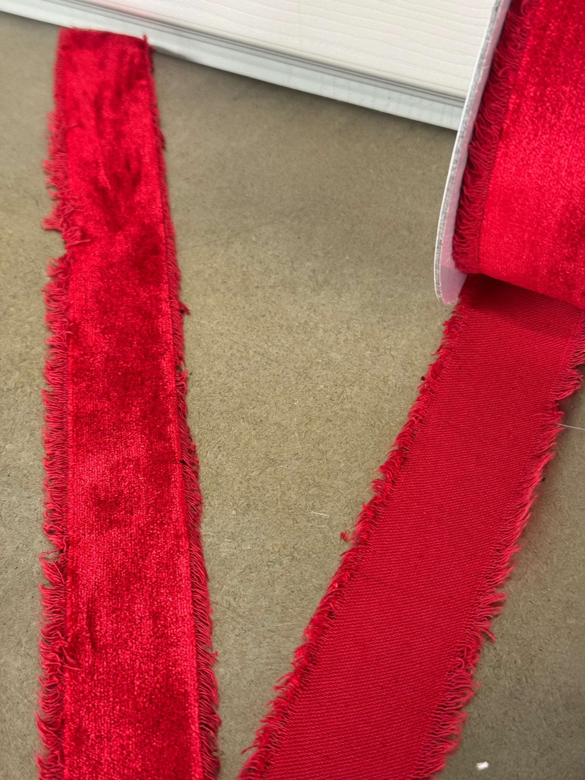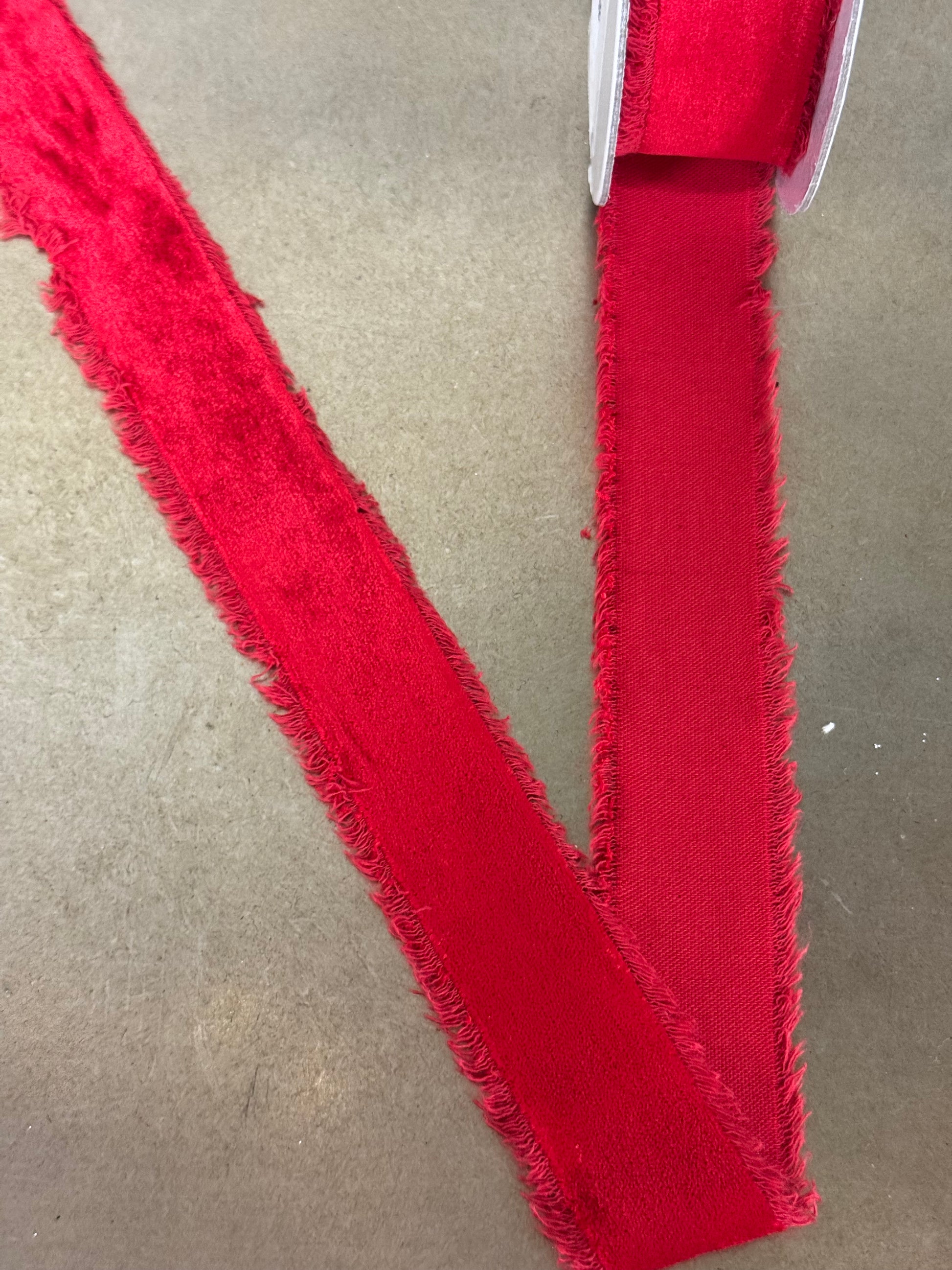 1.5 Inch By 10 Yard Red Frayed Edge Velvet Ribbon