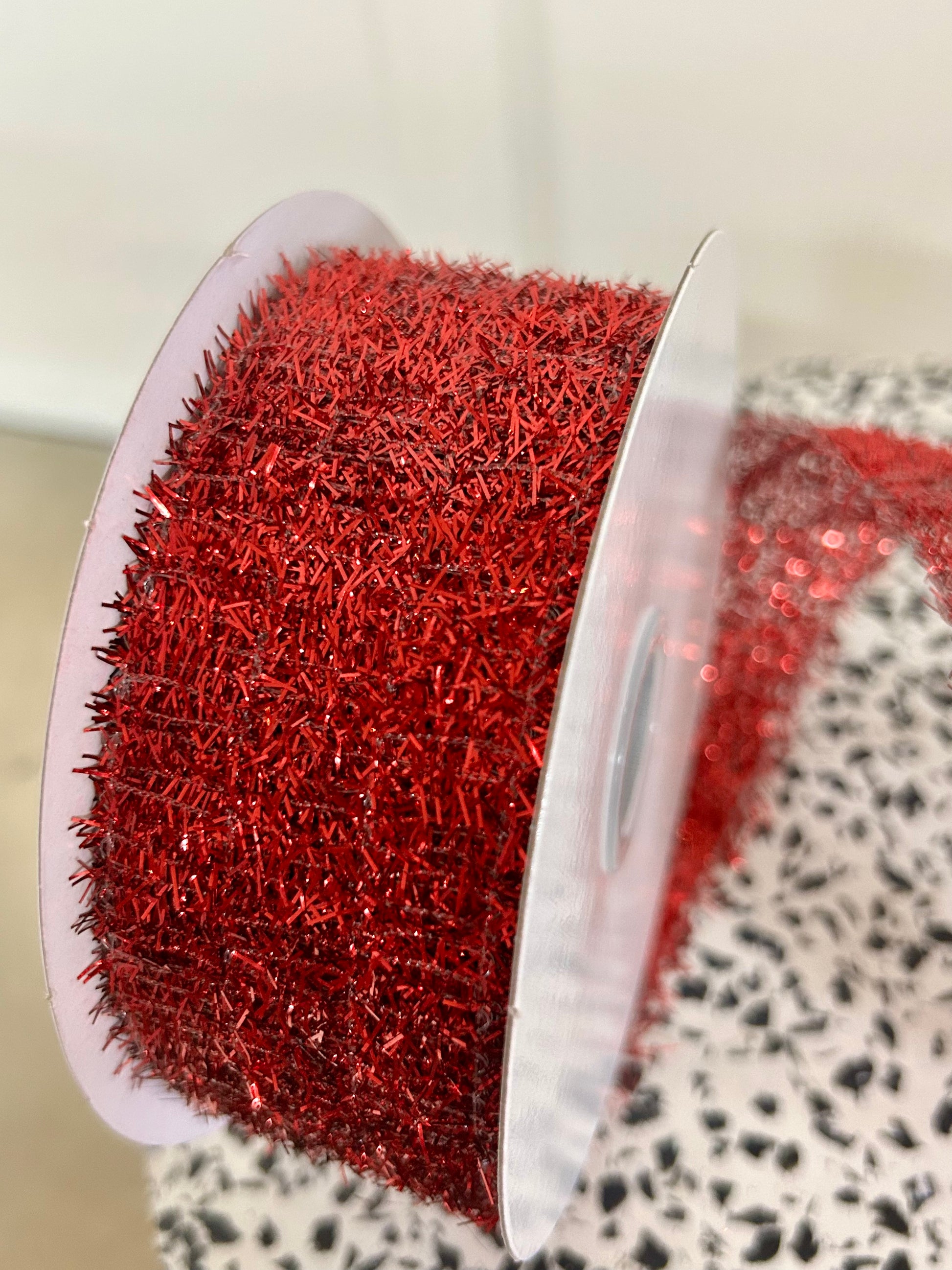 1.5 Inch By 10 Yard Red Long Confetti Metallic Wired Ribbon