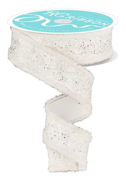 1.5 Inch By 10 Yard White Large Glitter Drift Ribbon