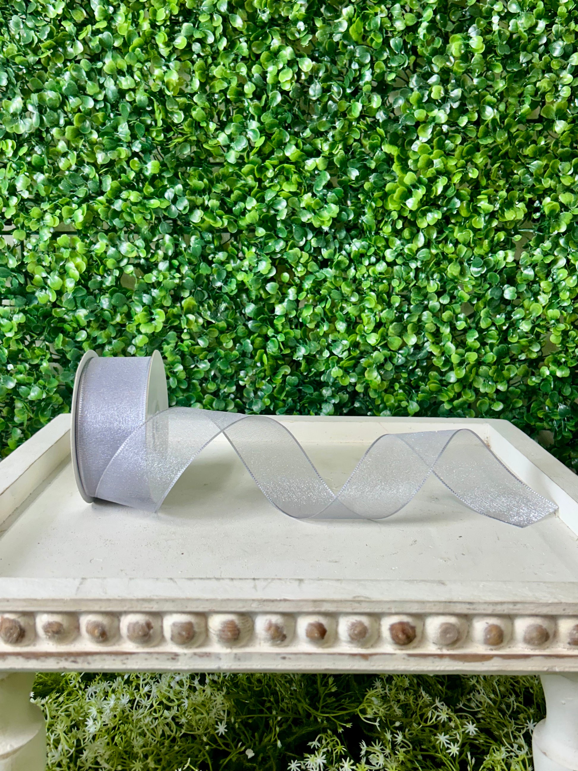 1.5 Inch By 25 Yard Silver Snow Organza Unwired Ribbon