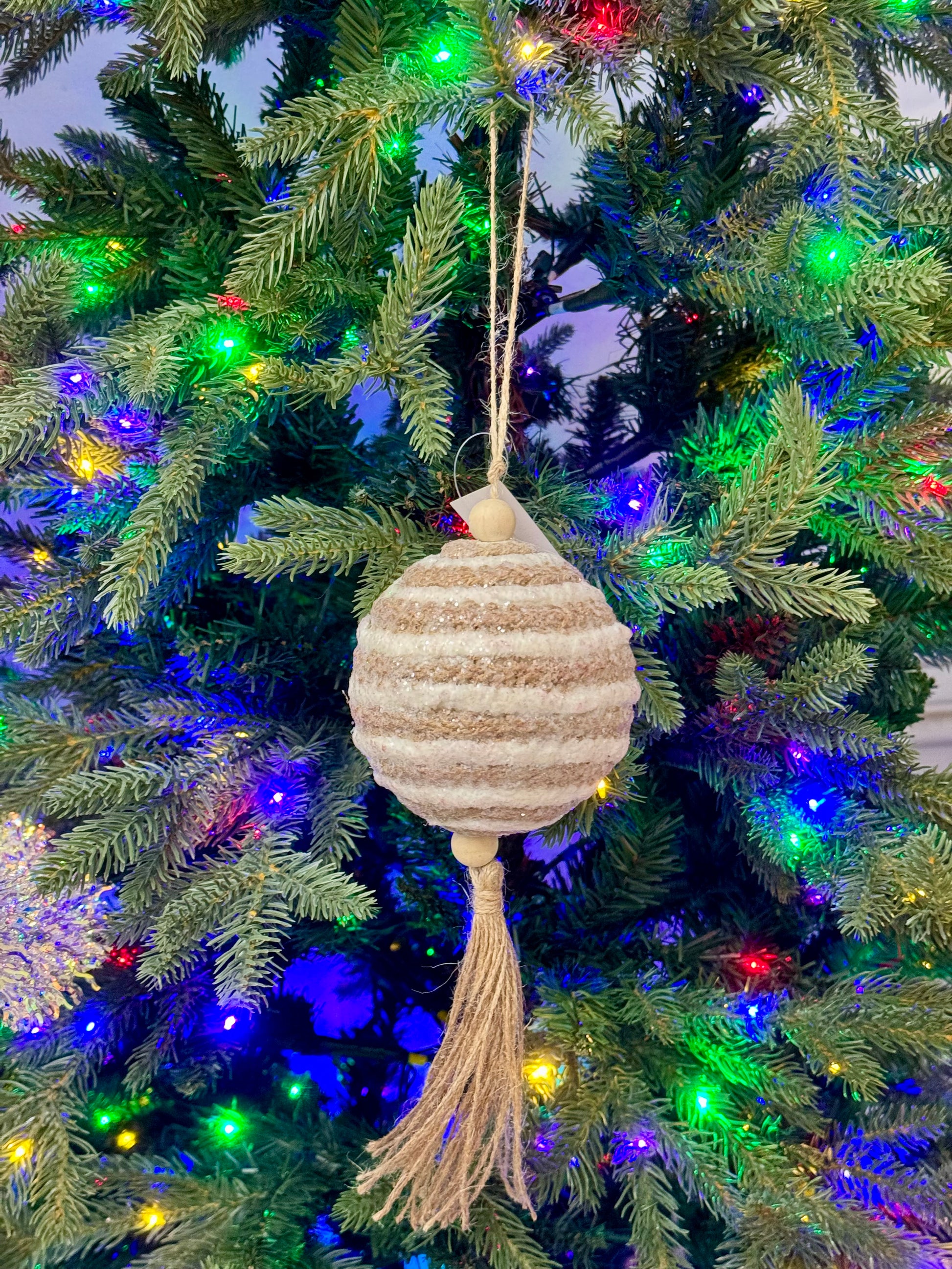 10.25 Inch Brown And White Jute Stripe Ornament With Tassel