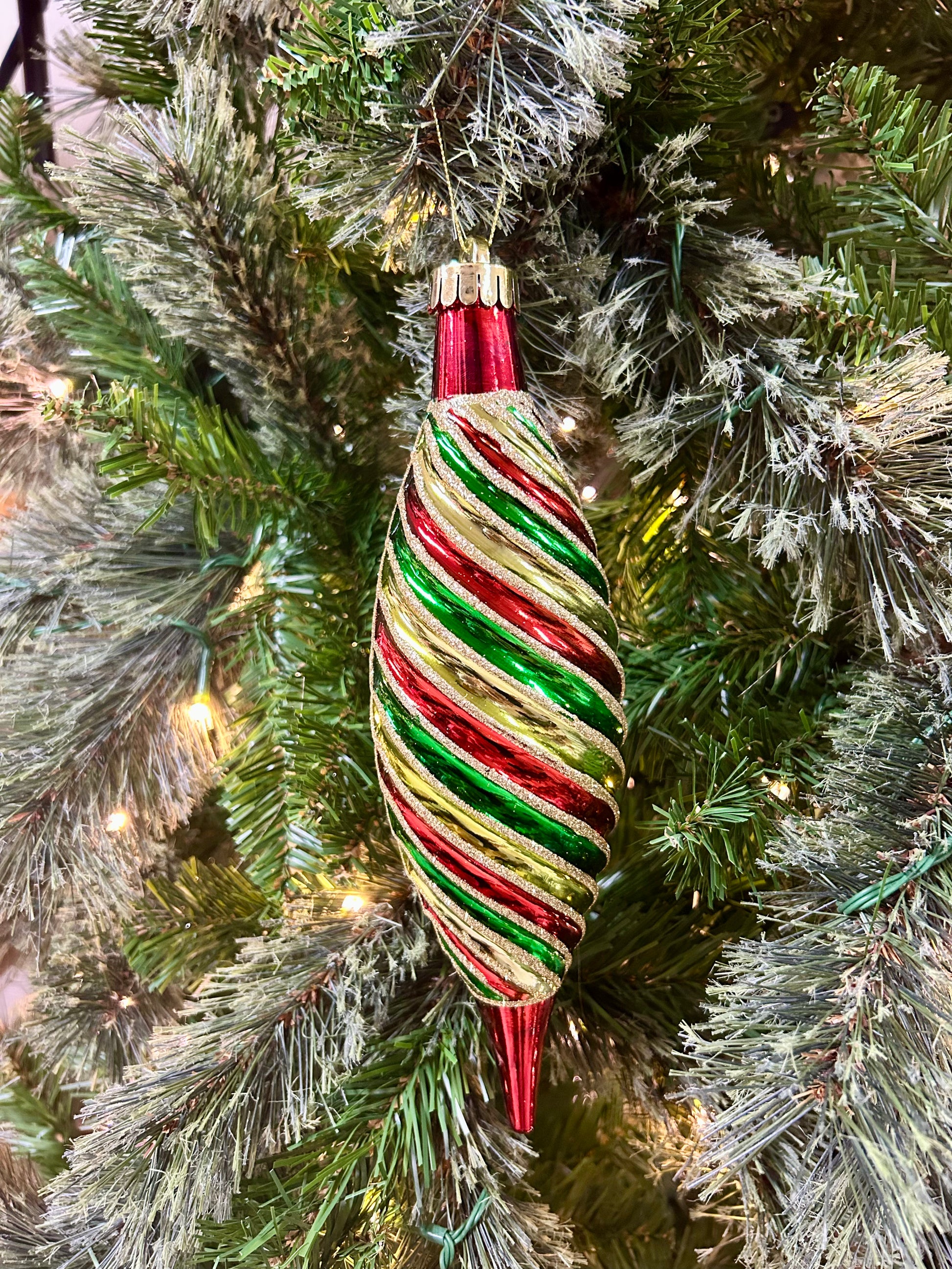 10 Inch Green Red And Gold Swirl Drop Ornament