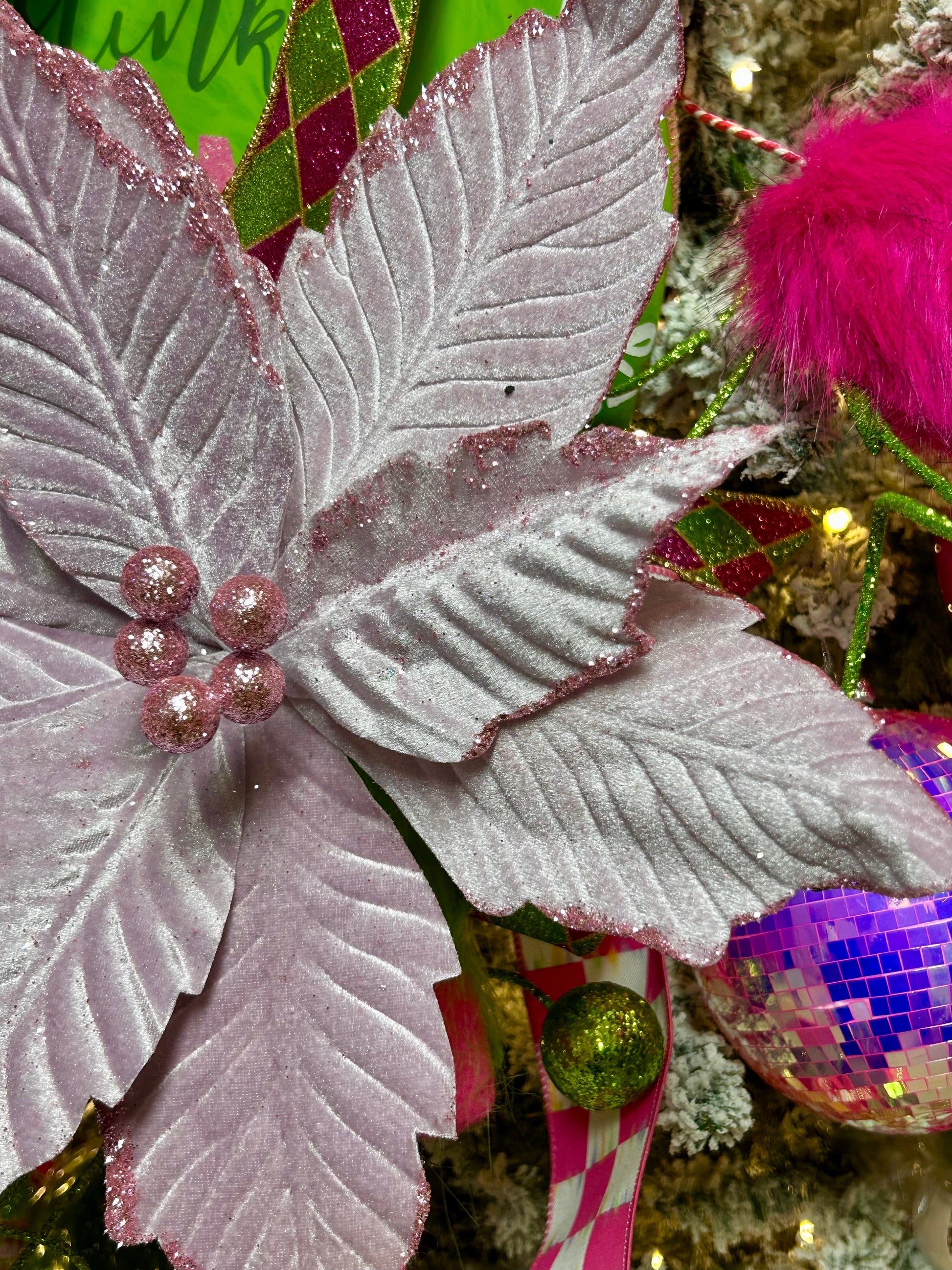 This 12.5-inch Lavender Velvet Poinsettia adds a sophisticated touch to any seasonal décor. Its soft velvet petals and delicate lavender hue make it an elegant choice for Valentine's Day, Easter, Christmas, spring, or summer arrangements. Perfect for enhancing festive displays or everyday settings, this poinsettia blends traditional charm with a fresh, versatile palette.
