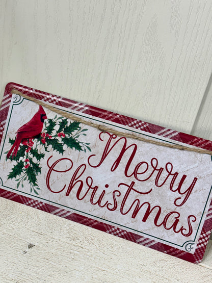 - Ring in the holidays with a cardinal pal! Hang this beautiful sign on your front door this holiday for the perfect way to wish everyone who enters your home a "Merry Christmas" with the help of a feathered friend!