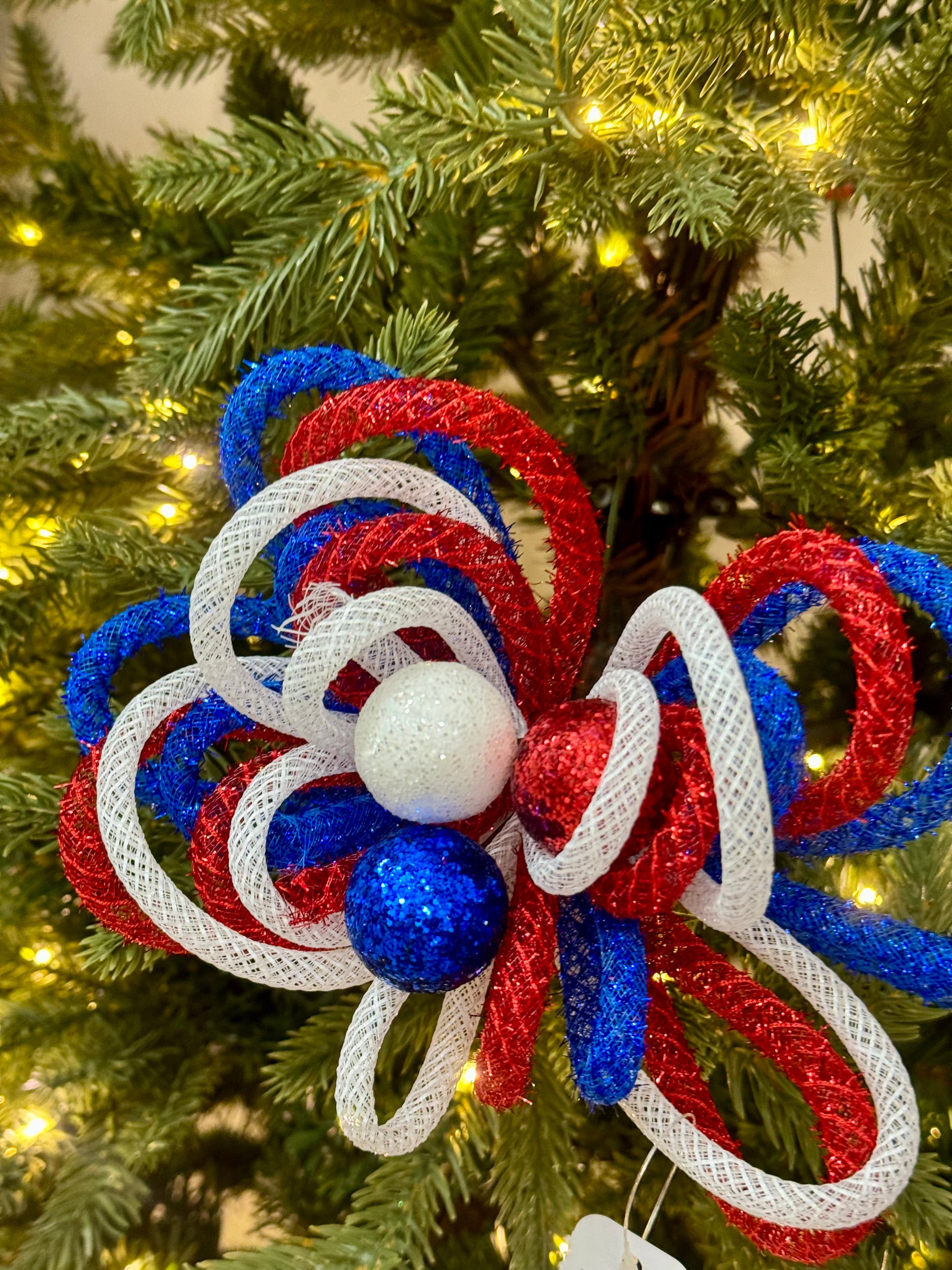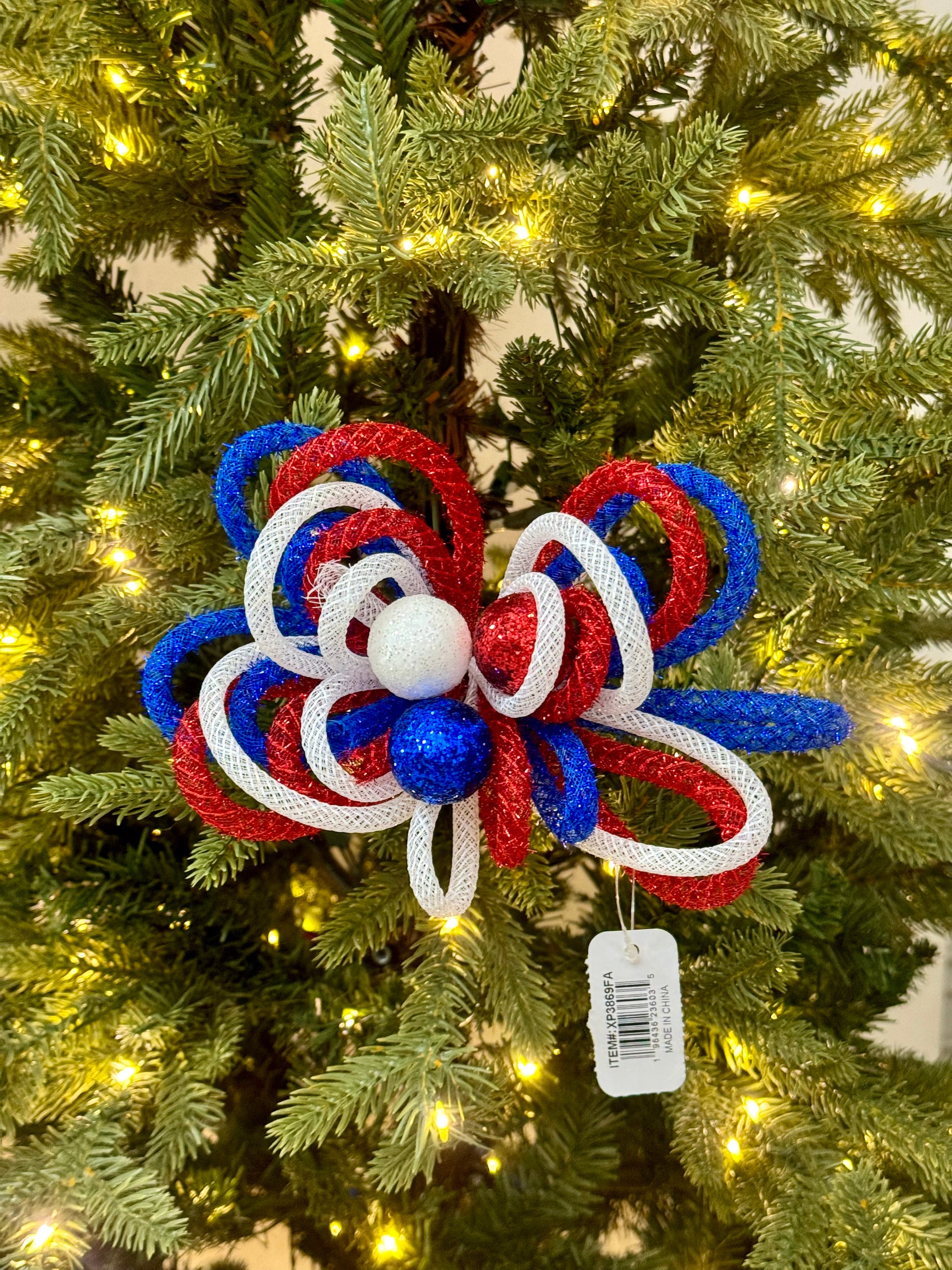 12 Inch Red White And Blue Tinsel Foil Ball Pick