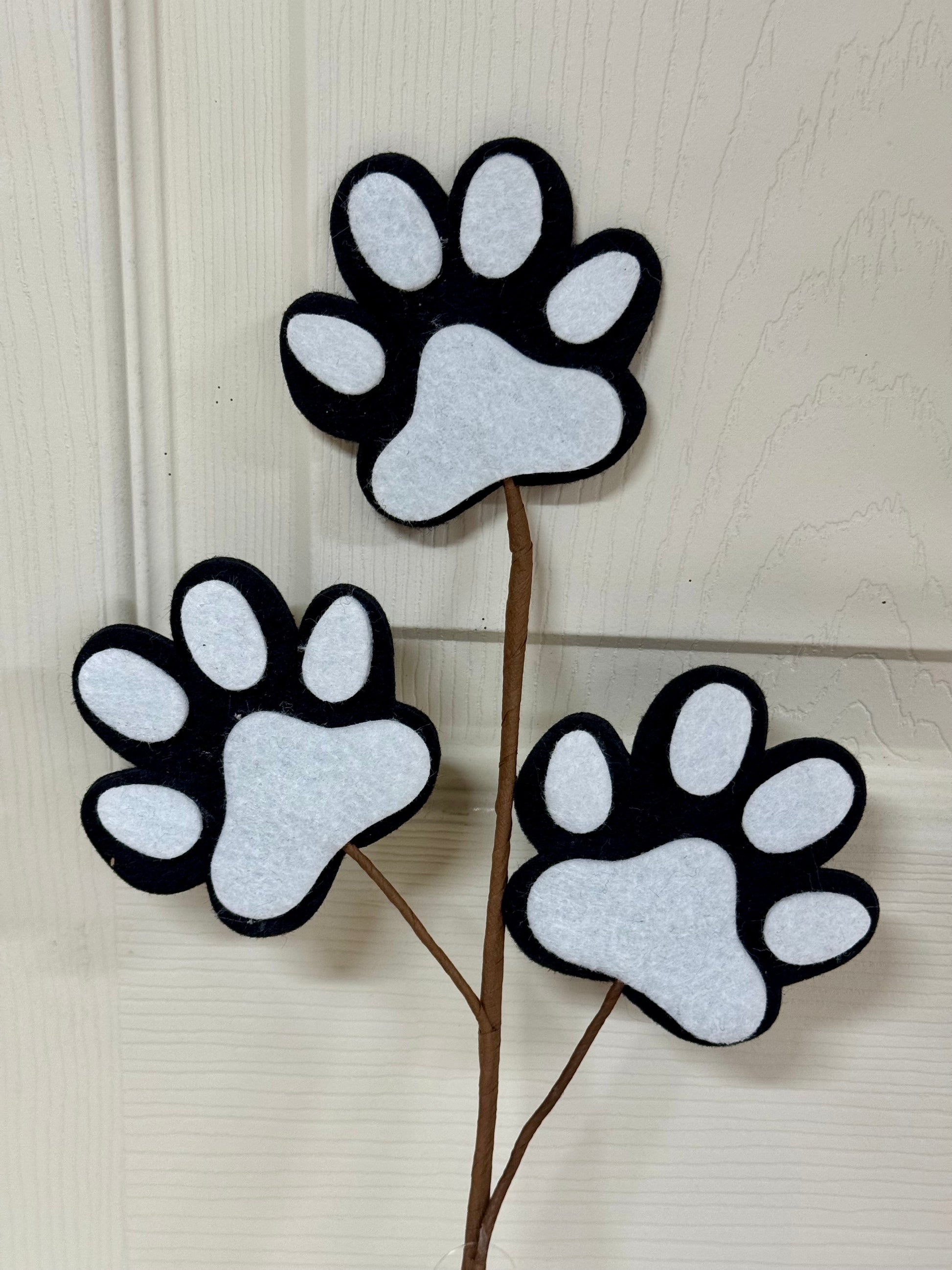 13.5 Inch Black And White Felt Pawprint Spray