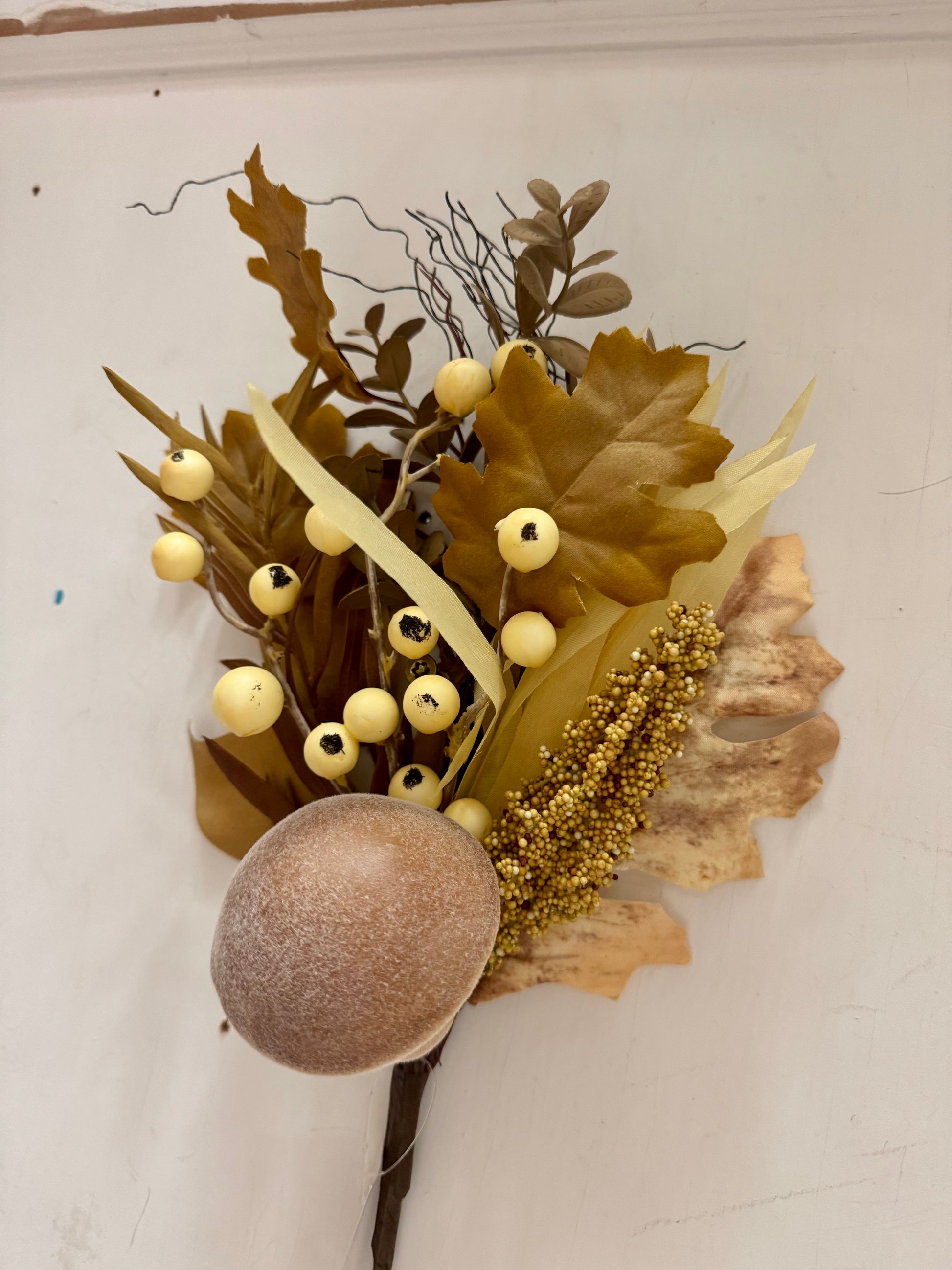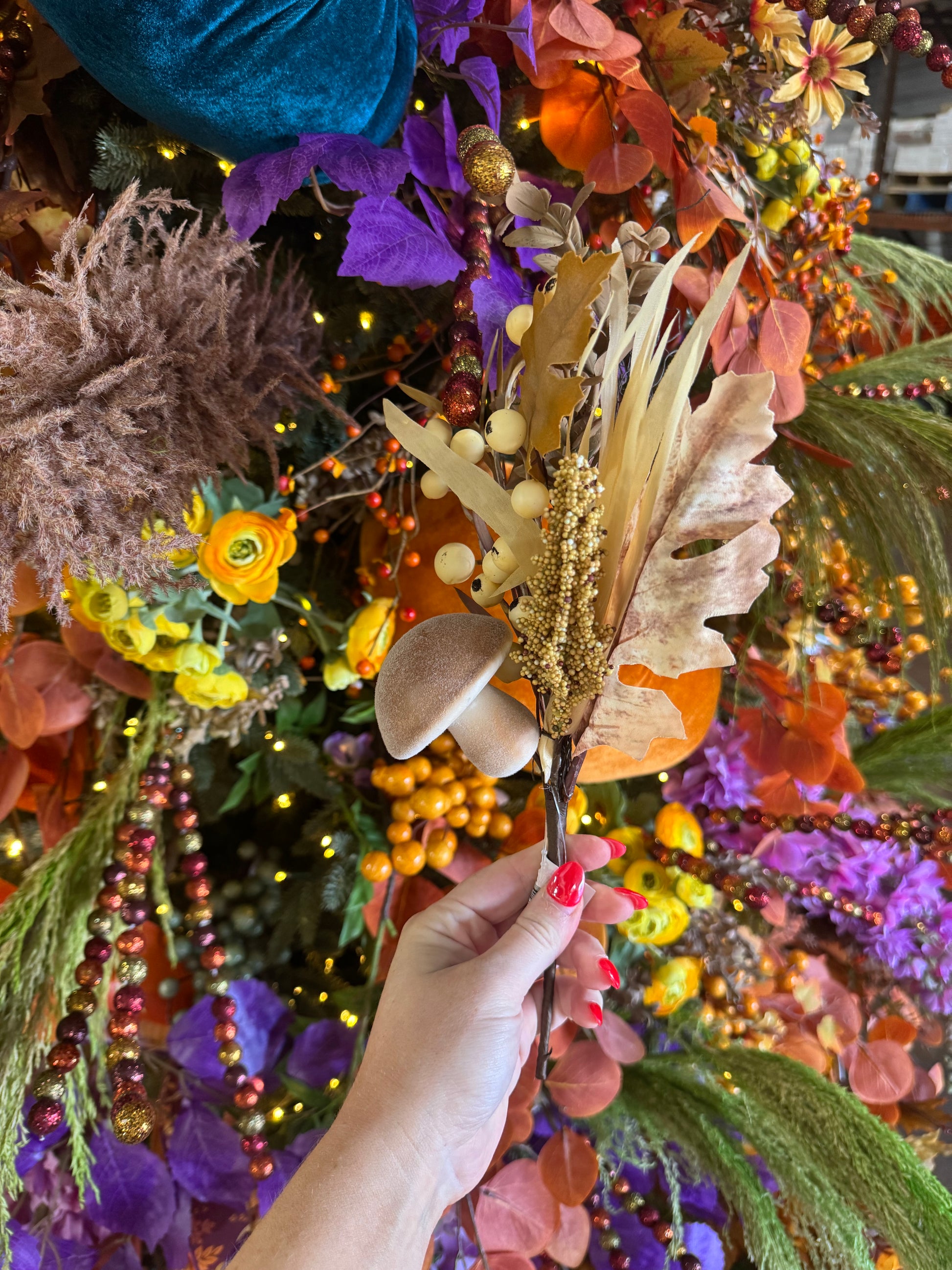 Capture the essence of autumn with this 14-inch fall spray featuring realistic mushrooms and vibrant fall foliage. Perfect for seasonal crafts or home décor, it offers an expert blend of textures and colors that bring warmth and natural beauty to any setting. Ideal for wreaths, centerpieces, or accent pieces, this spray adds a sophisticated touch to your fall decorating projects.