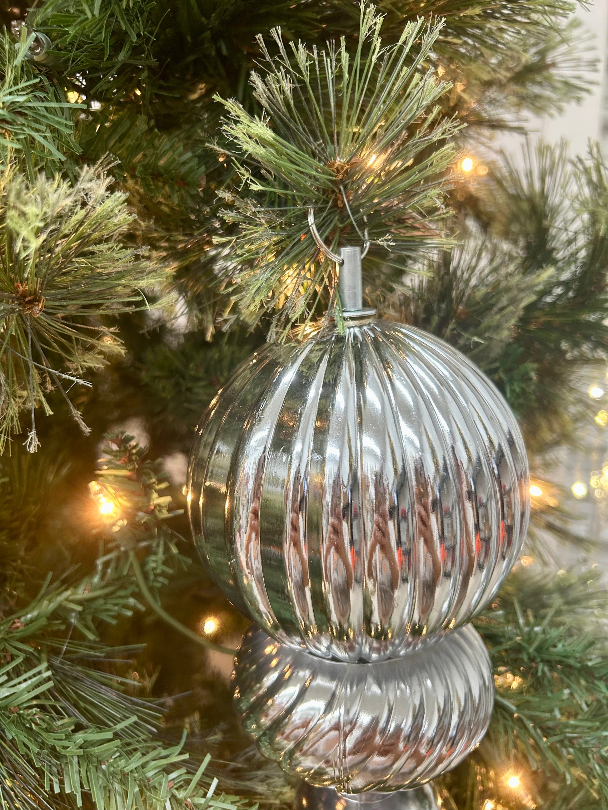 14 Inch Shiny Silver Vertical Stripe Ball Finial Ornament