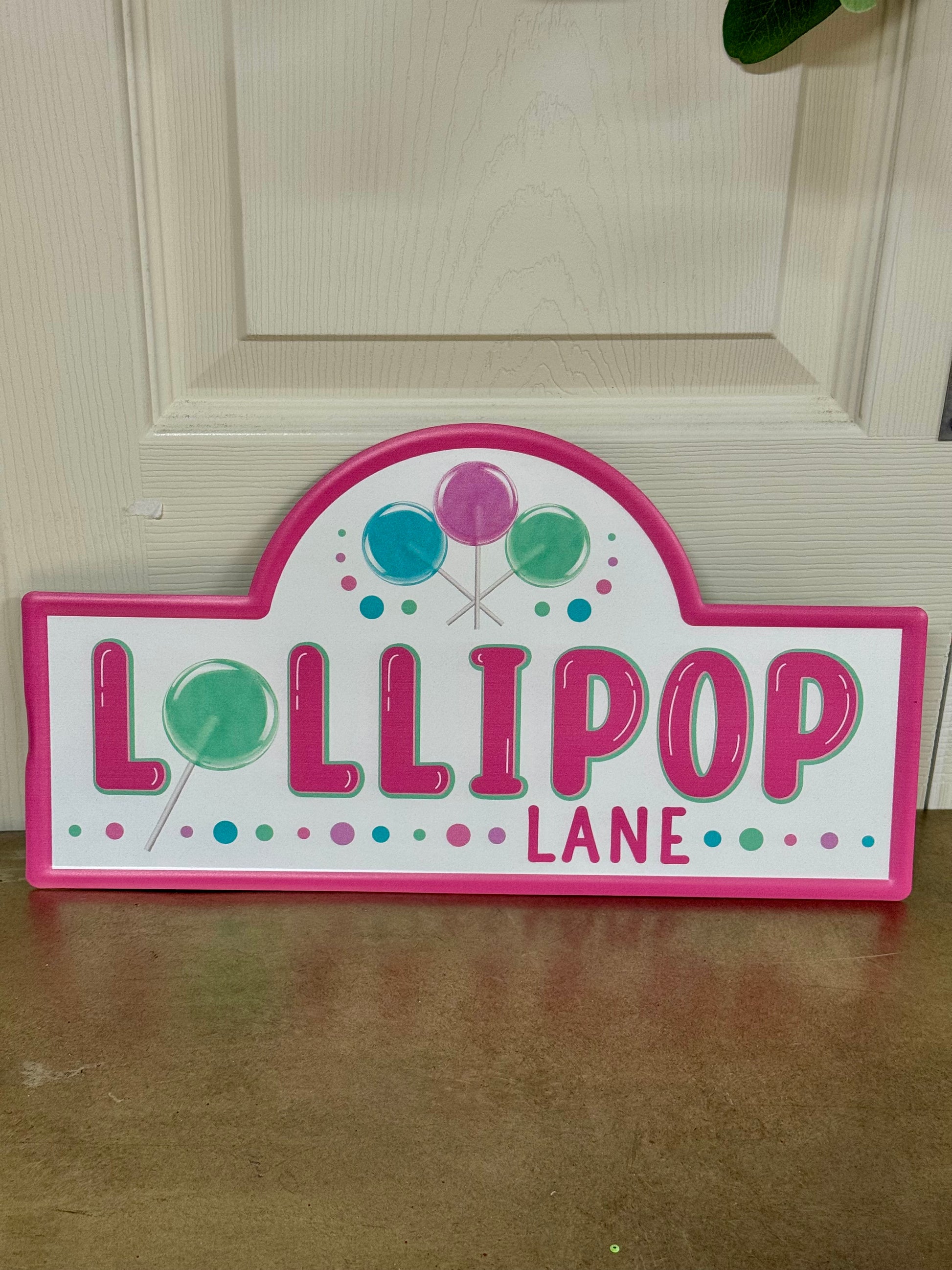 15 Inch Pink Mint Blue Lollipop Lane Street Metal Sign