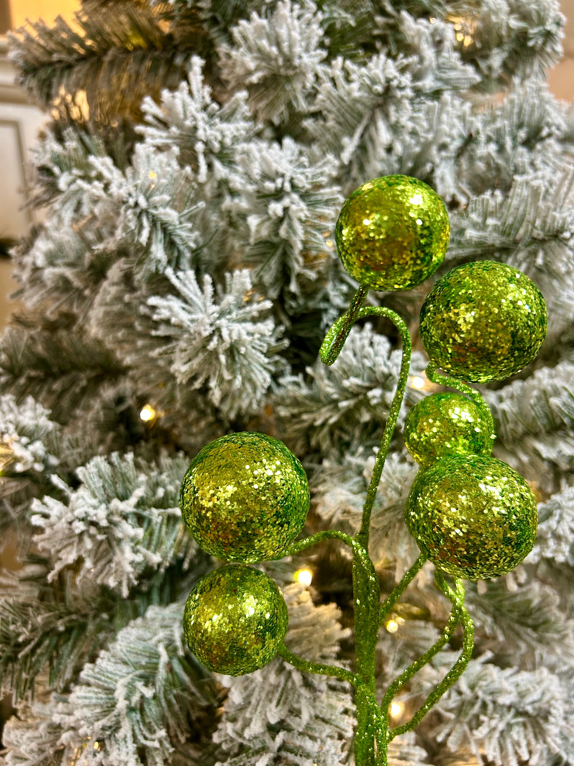 Add a vibrant touch to your seasonal decor with this 18-inch Lime Green Glitter Ball Spray. Perfect for Christmas, Halloween, and St. Patrick’s Day, its sparkling finish brings festive brilliance to any arrangement. Crafted to stand out, this decorative spray adds texture and shine, making it an expert choice for enhancing wreaths, centerpieces, and floral designs.