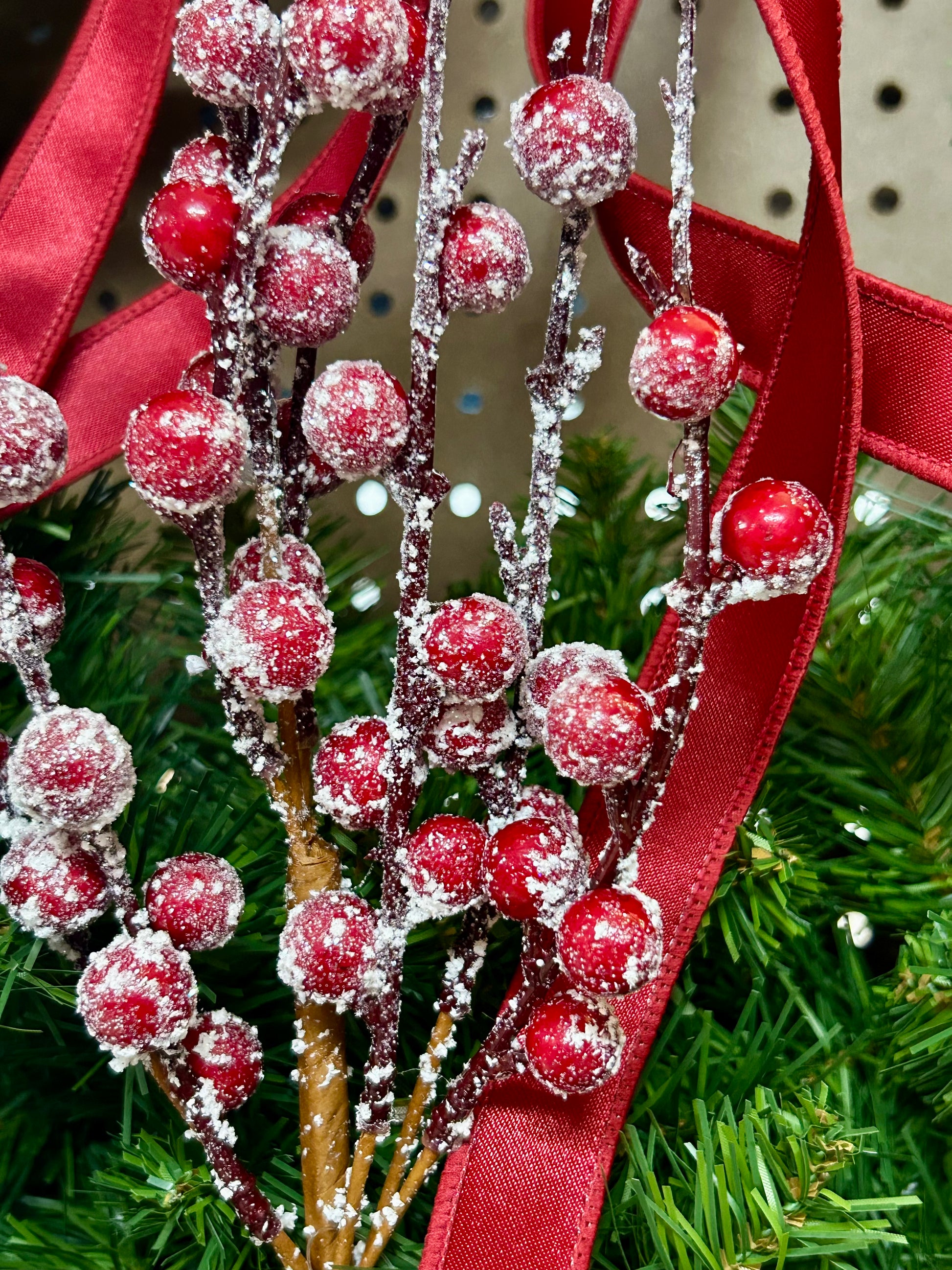 Enhance your holiday decor with this 18 Inch Red Berry and Snow Pick. Featuring vibrant red berries dusted with a realistic snow effect, it adds a festive touch to wreaths, garlands, and floral arrangements. Its durable construction ensures lasting beauty throughout the season, making it an essential accent for expert-level Christmas decorating.