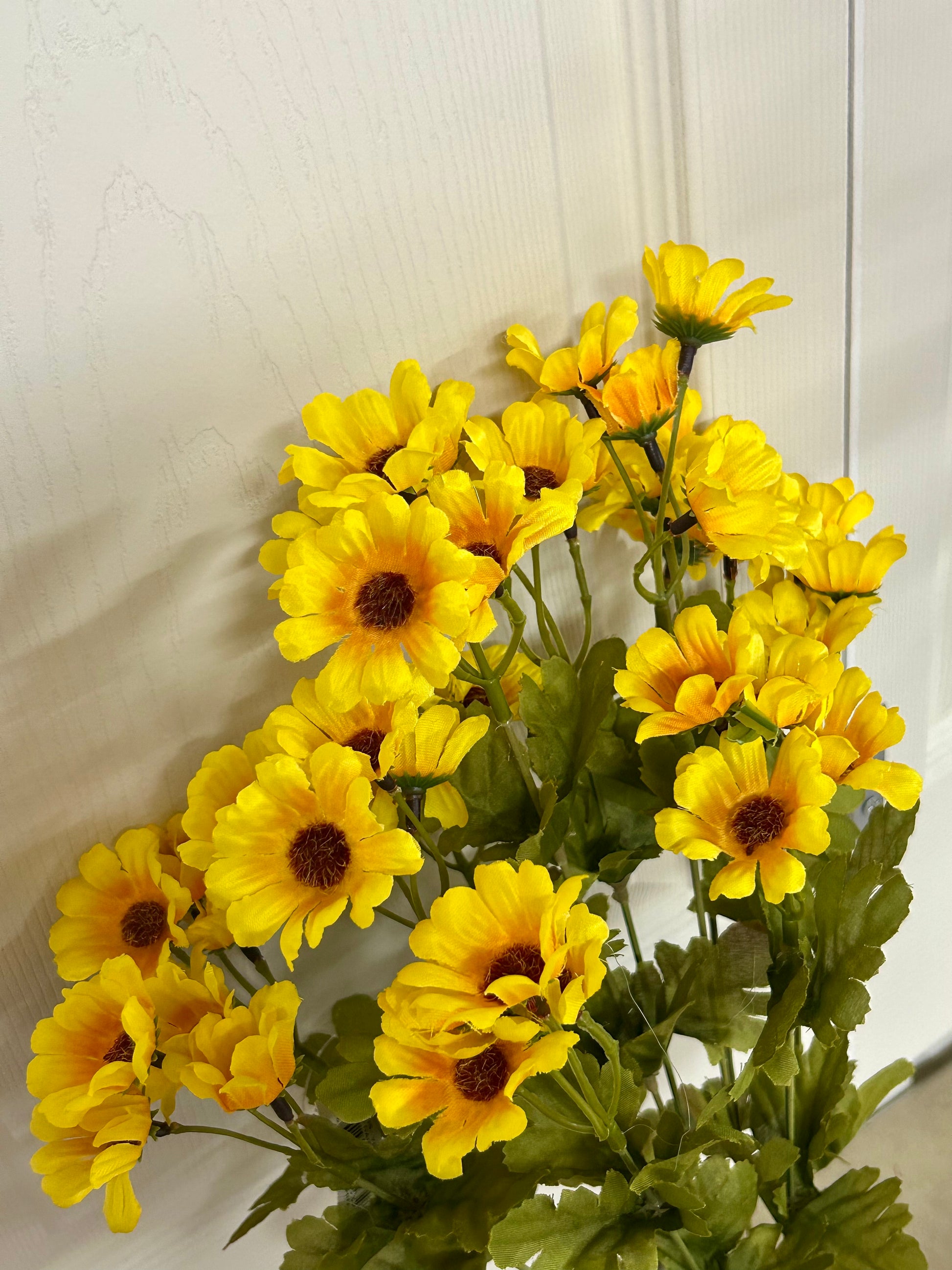 The 19.5 Inch Yellow Wild Daisy Bush offers vibrant, lifelike yellow blossoms that bring natural beauty to your space across fall, spring, and summer. Its carefully crafted foliage maintains a fresh appearance through multiple seasons, making it an ideal low-maintenance decorative element for both indoor and outdoor settings. This bush provides an expert touch of seasonal charm, perfect for enhancing floral arrangements or landscape designs year-round.