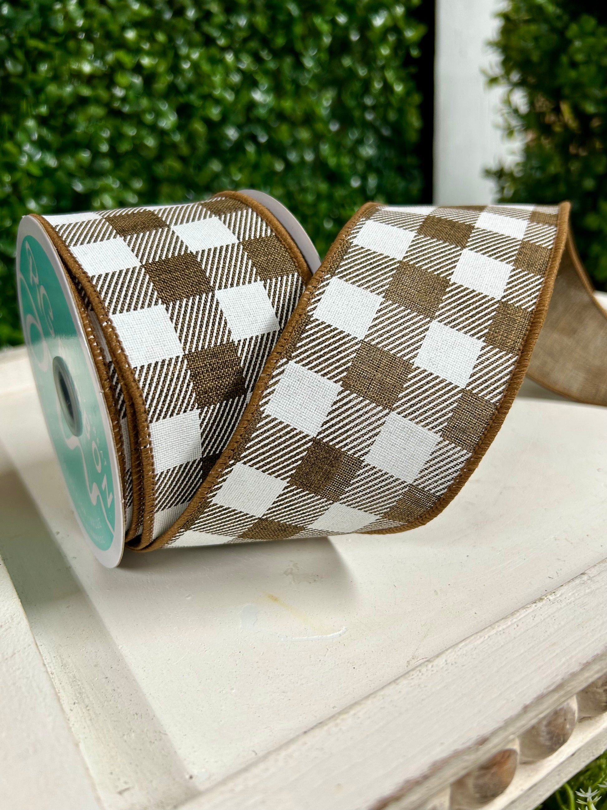 2.5 Inch By 10 Yard Brown And White Striped Check On Royal Ribbon