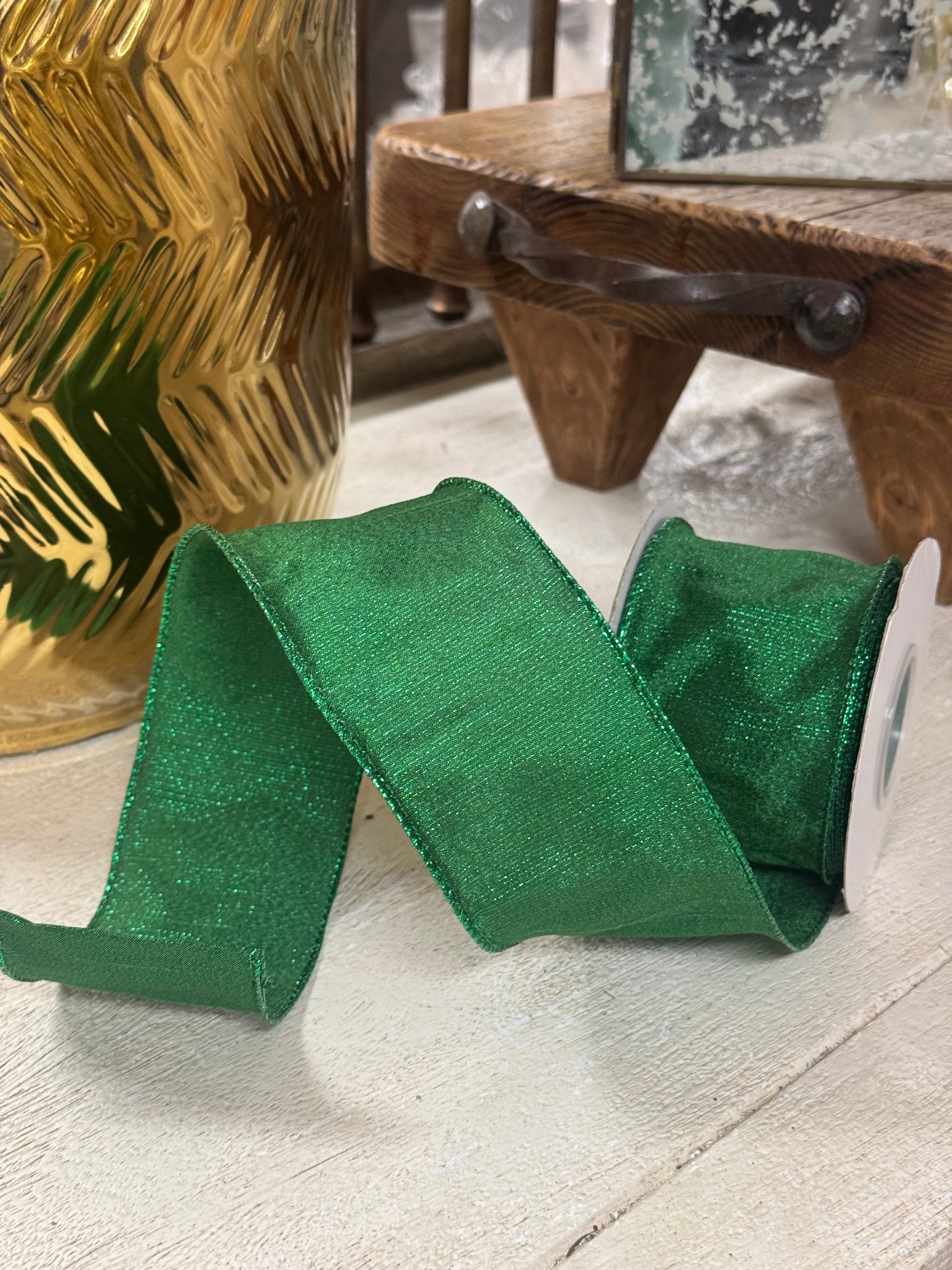 2.5 Inch By 10 Yard Emerald Green Metallic Dupioni Ribbon