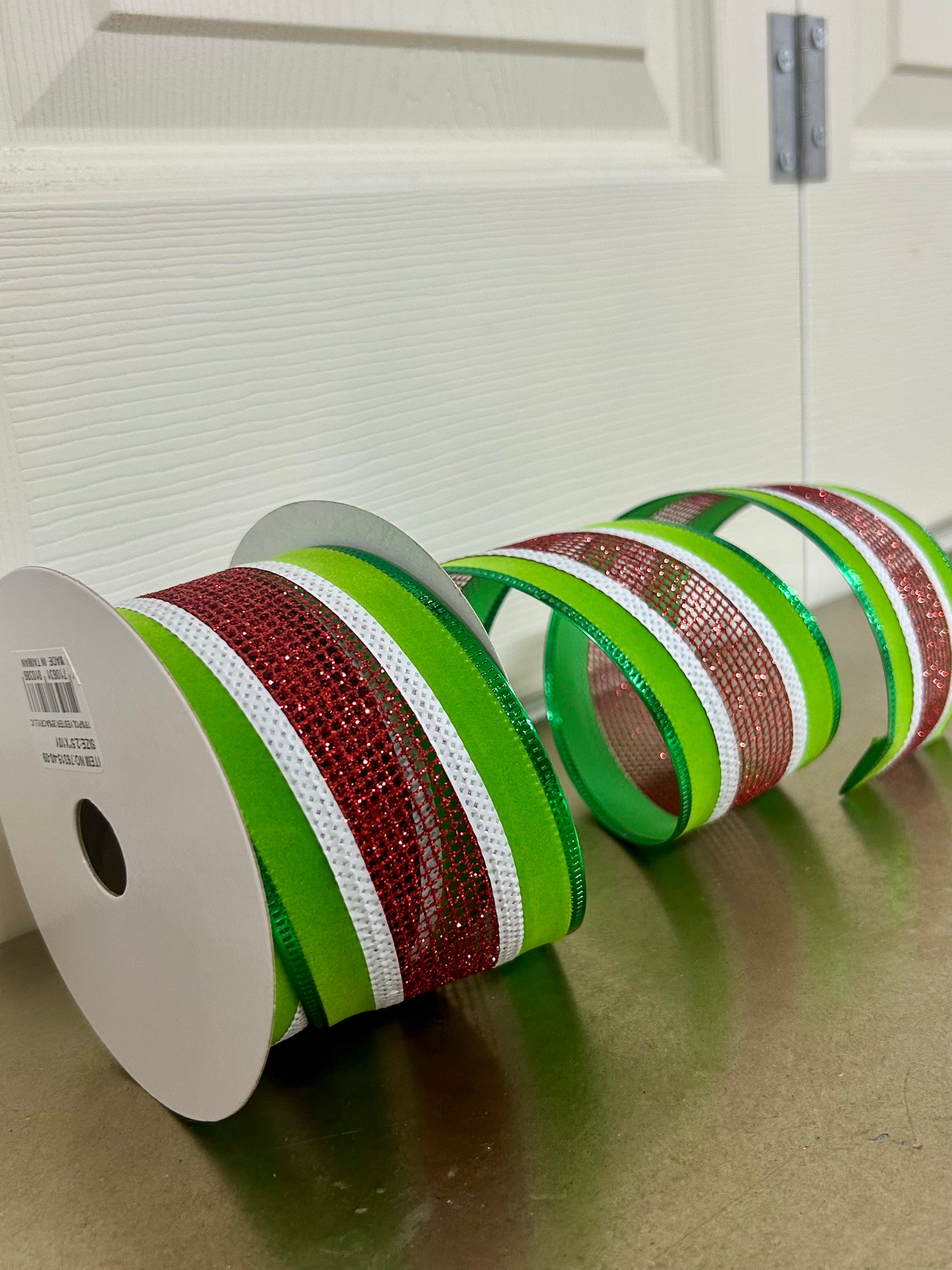 2.5 Inch By 10 Yard Green Velvet With Red Net Center Ribbon