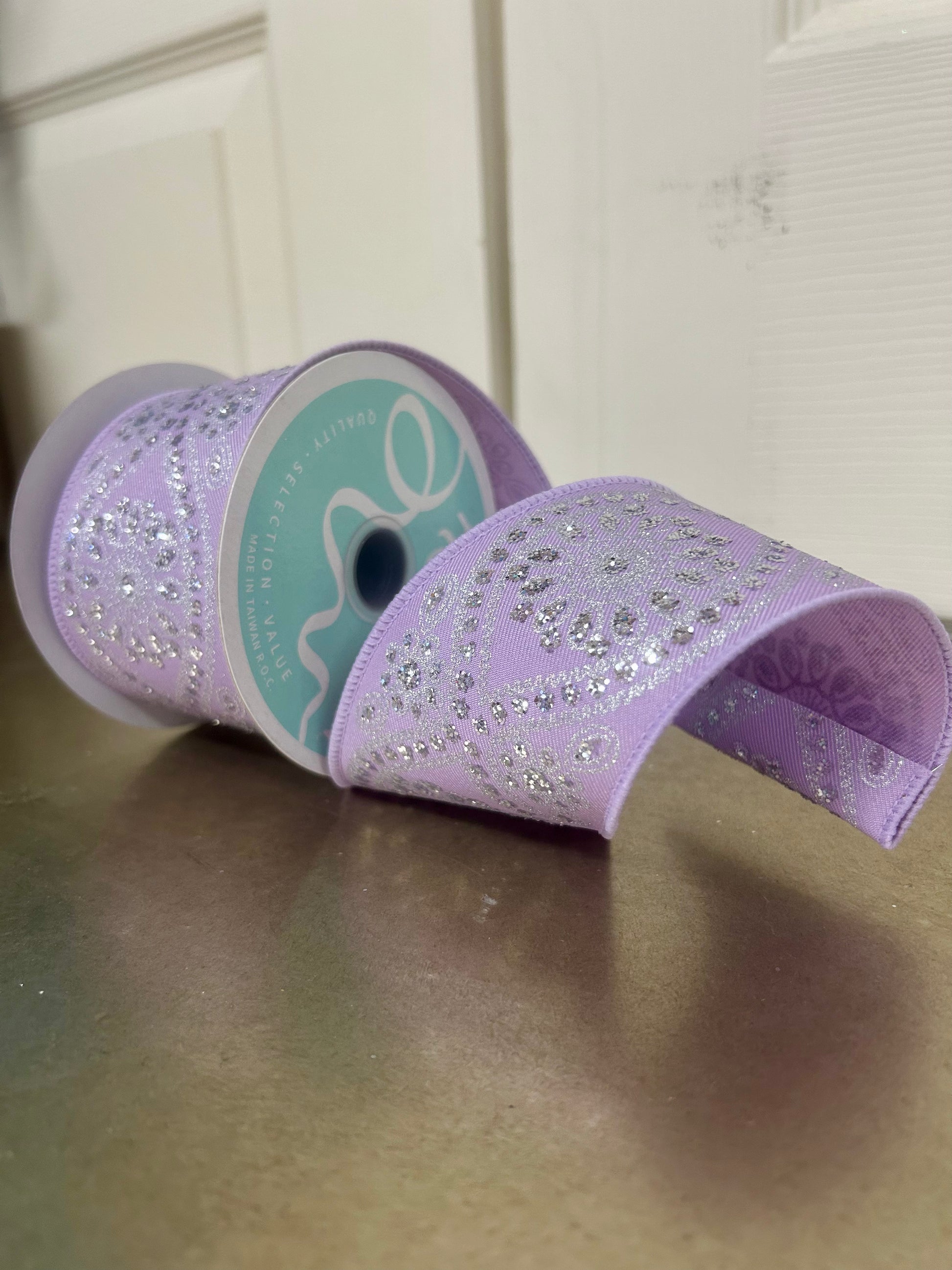 2.5 Inch By 10 Yard Lavender And Silver Deluxe Wavy Floral Ribbon